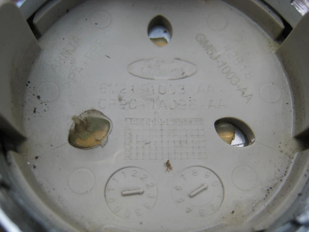 Found on the road... really... did you lose just one and need just one? I simply wiped it off with a damp cloth and here it is as found. I do not see a "brand" or maker mark other than the Ford badge in the middle. This is a plastic item with high chrome finish... it is not a metal hubcap. It is stamped IWCIMP385X-18" on the back and does have for Ford badge/insignia on it. Please see pictures and review information carefully. Email with any questions.