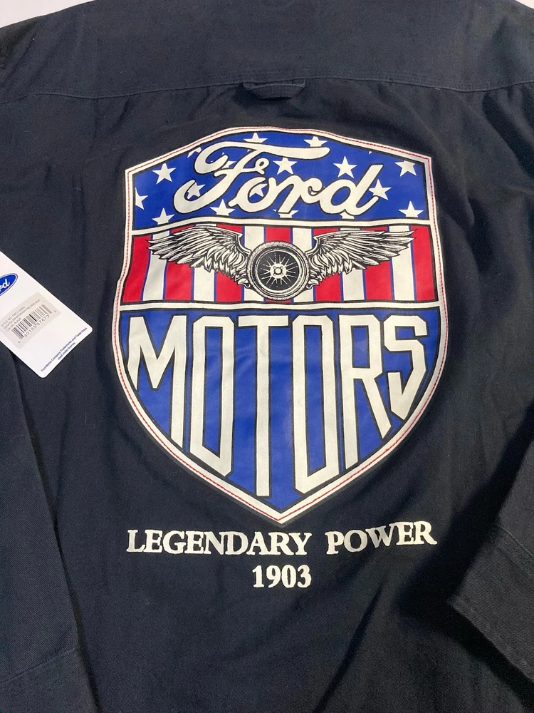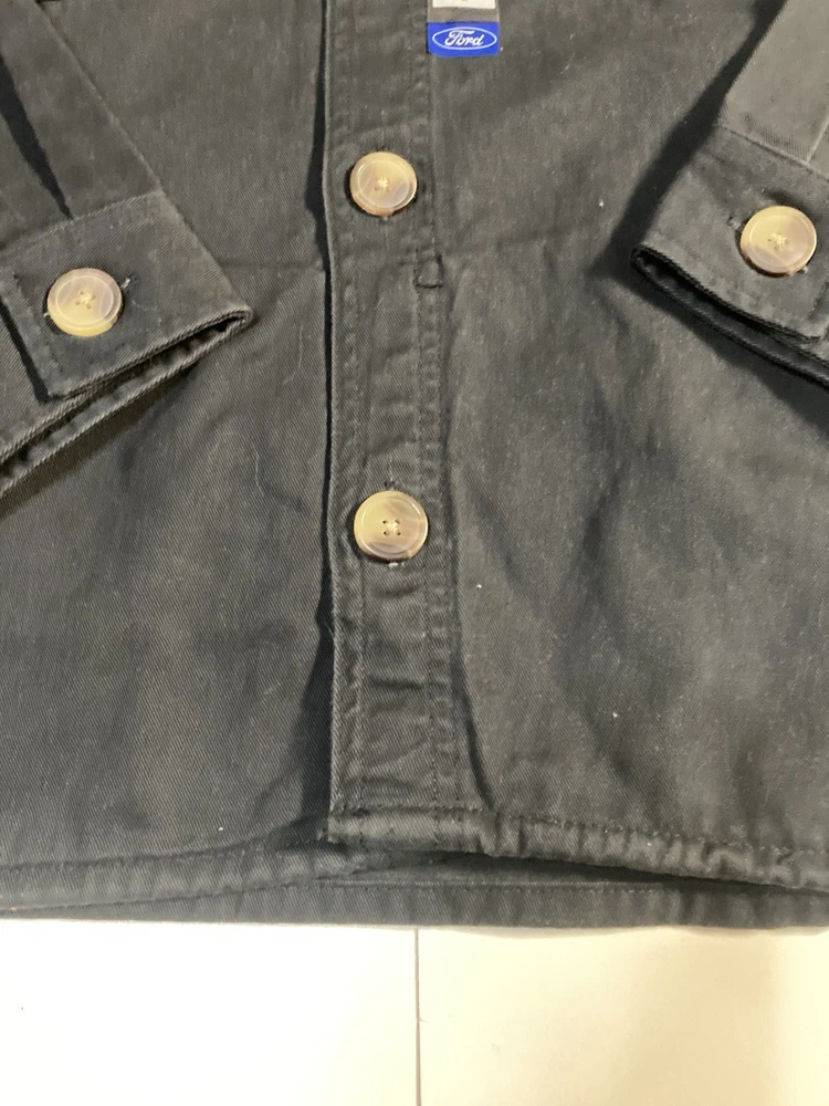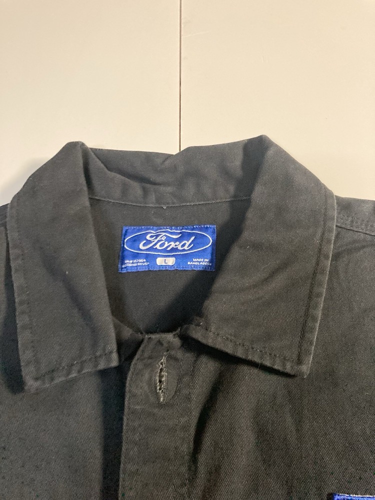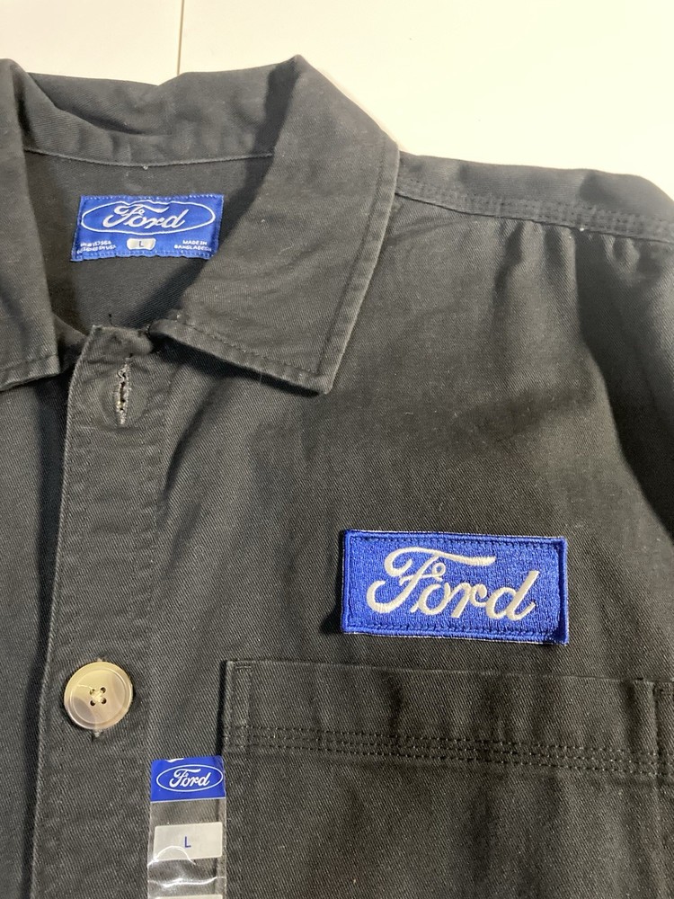 The Ford Motors Mechanic Style Canvas Twill Chore Coat Work Jacket is a stylish and durable outerwear piece perfect for men. Made from a cotton blend fabric with a solid black color and embroidered logo accents, this mid-length jacket exudes a classic and retro transportation theme. The regular fit and button closure make it both comfortable and practical for everyday wear. With its Ford Motor Company branding and high-quality construction, this jacket is a must-have for any man looking to add a touch of nostalgia to their wardrobe.