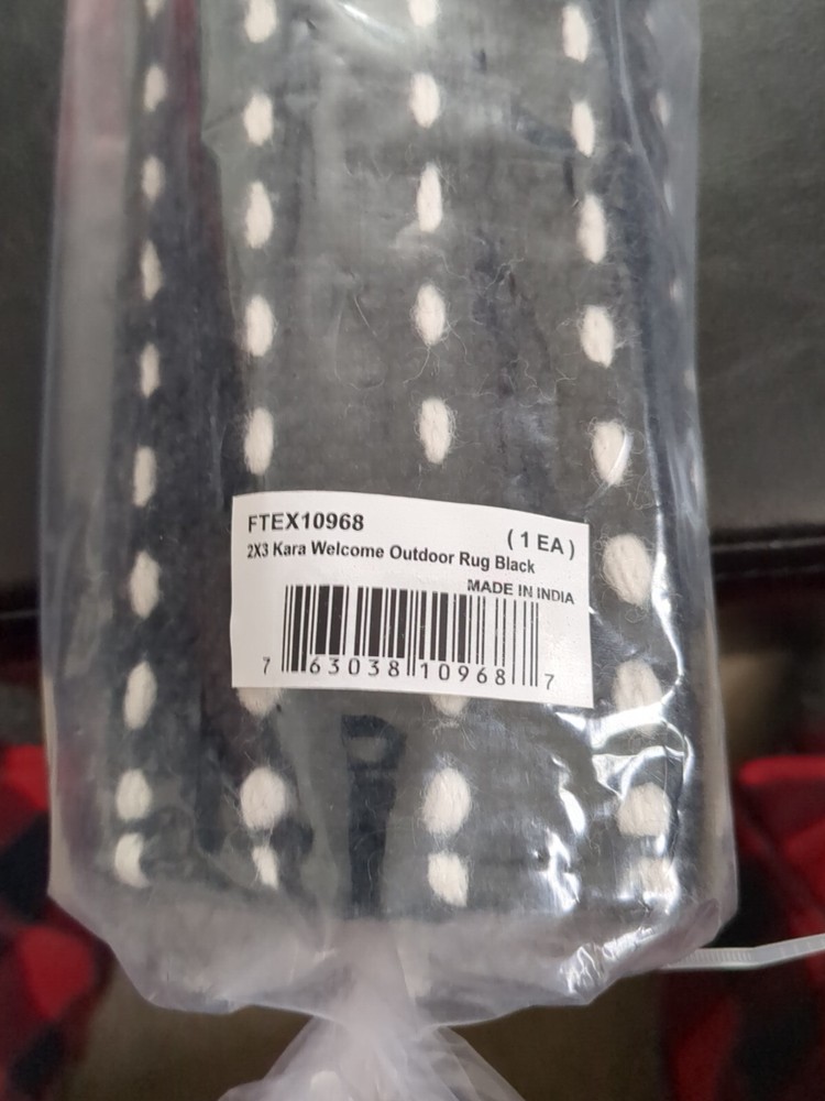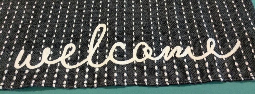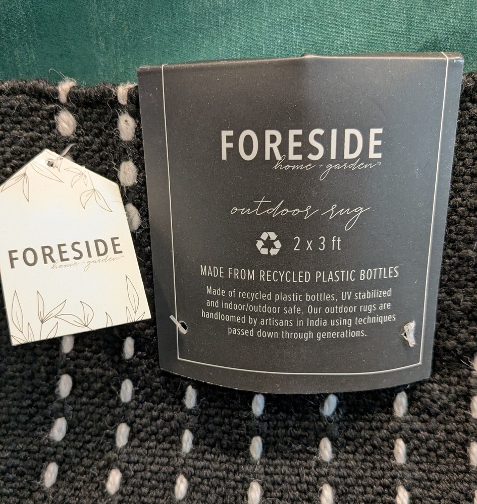 Foreside Hand-Woven 2' x 3' Checked "Welcome" Rug – Black & White This Foreside hand-woven rag rug features a classic black and white checked pattern with "Welcome" woven into the design. Made from recycled plastic bottles, this eco-friendly 24" x 36" rectangular mat is perfect for adding a stylish and inviting touch to any entryway or living space. Suitable for both indoor and outdoor use, it offers durability and timeless appeal. Design: Black and white checked pattern with "Welcome" Size: 2' x 3' (24" x 36") Use: Indoor & outdoor Material: Recycled plastic bottles Eco-Friendly: Sustainable and durable Material: High-quality fabric