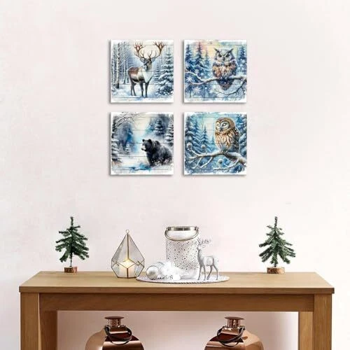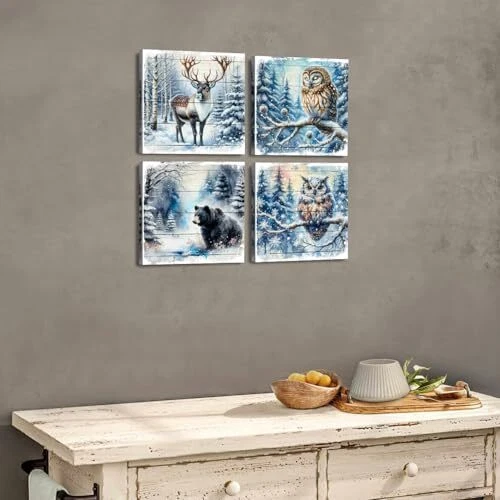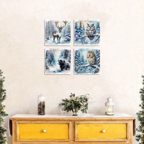 30 Days Return Policy Fast Delivery Trusted seller Forest Deer Pictures Wall Decor Christmas Wall Art Bear Pictures Winter Forest Canvas Prints Wildlife Animal Paintings Elk Owl Bear Posters Artwork for Living Room Kitchen Home Decoration 12x12" 4Pcs Product Description 【Winter Forest Wall Art Size】- 12x12in x 4pcs(30cmx30cm x 4), Rustic winter forest animals canvas wall art, retro farmhouse Christmas wall decor already come with canvas wrapped wooden framed and hook mounted ready to hang. Vintage wood grain farmhouse Christmas wall art, adds an winter festival touch to your holiday party or home interior. 【Deer Wall Decor Unique Gift】- Farmhouse bear elk owl wall art snow forest wall decor great gift for any occasions. Winter forest scenery farm animals wall decor suitable for giving to family members, friends, lover, business partners, neighbors, workmates on Christmas, New year, Birthday, Housewarming, Wedding, Memorial Day, family gathering, Party, Father's day, Mother's day etc. 【Wildlife Pictures Christmas Wall Art】- Rustic wood grain wildlife wall art easy match any room decor style, suitable to hang in living room, foyer, apartment, villa, kitchen, office, couple bedroom, guest room, bathroom, hall, lounge, dorm, hotel, restaurant, coffee, loft, gym, bar, etc. Impressive wall art painting bringing modern nature winter scene to your home decor. 【Christmas Decor Premium Canvas Prints Art】- We use high-definition giclee printing technology, for bring bright&rich color and HD pixels, prints on high gloss, waterproof, UV resistant canvas with vivid color and great details. No needed additional frame, easy for hang. 【Please Note】- This Christmas wall art display picture are only for illustration purpose, color may vary due to different brand of monitor, light, screen setting.If t is any issue, please don't hesitate to mail us. We always committed best buying experience for our customers. Shipping Returns Payment Shipping Shipping is FREE to all addresses other than APO/PO boxes in the lower 48 states. All our stock ships from US-based warehouses. Shipped via USPS or UPS (depending on location and package weight) Unless stated otherwise, all orders will ship within 24-72 hours of your payment being processed. Check our feedback to see the great reviews of FAST shipping we offer. Returns As our valued customer, we will do our best to make sure the product you receive arrives to you on time and as expected. If you are not satisfied with your purchase, please contact us within 30 days of receiving your order to process a return. Payment We currently accept payment via eBay managed payments only. Once payment is cleared, we will dispatch your shipment within 1-3 business days. Please refer to the "Shipping" tab for more information regarding shipping speed to your destination.