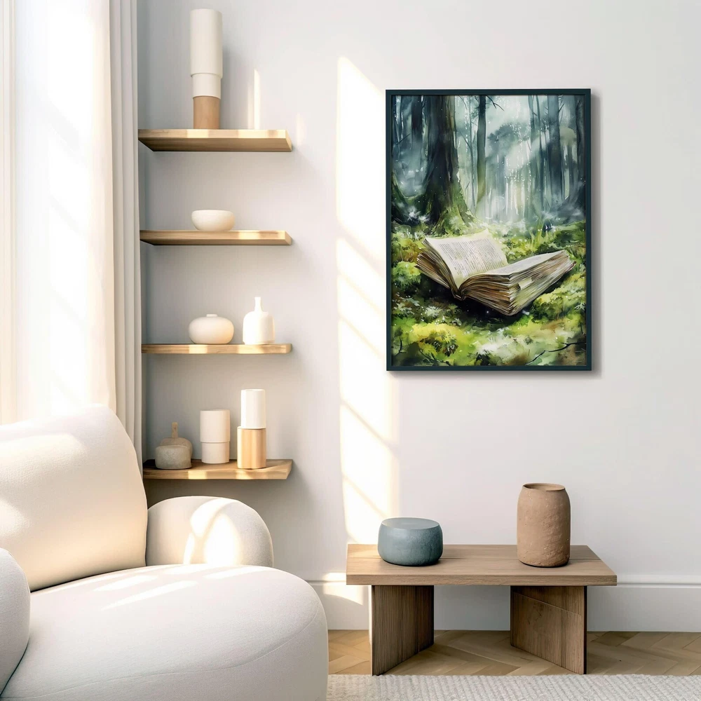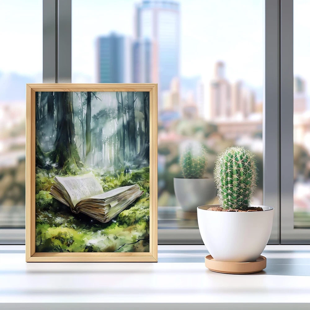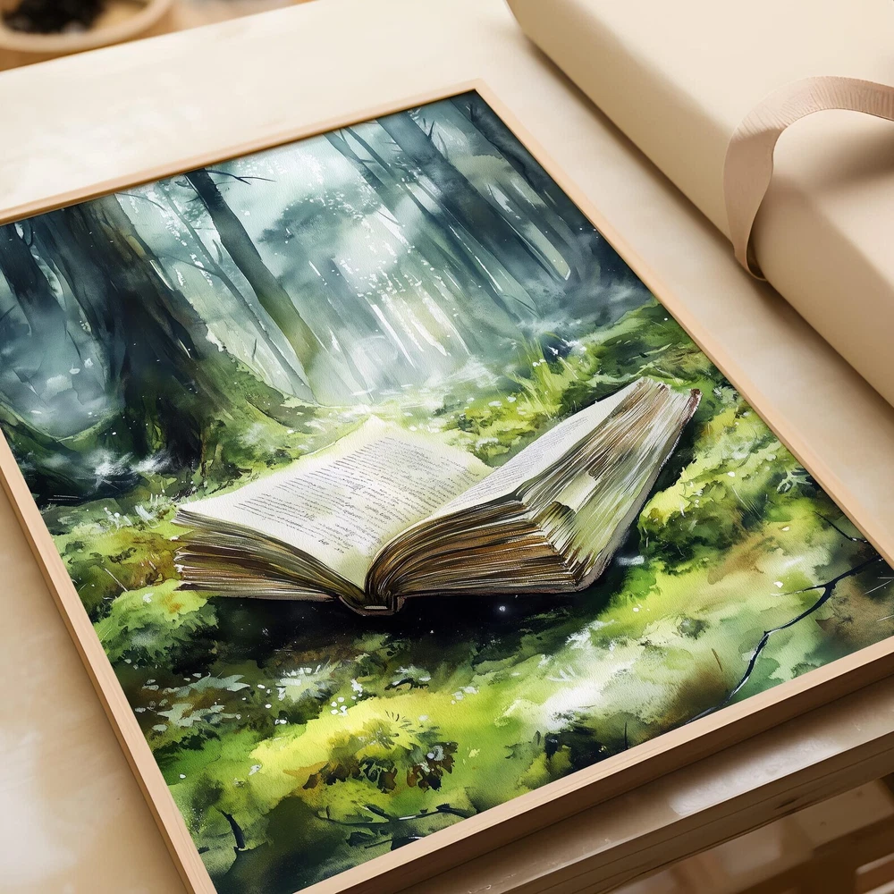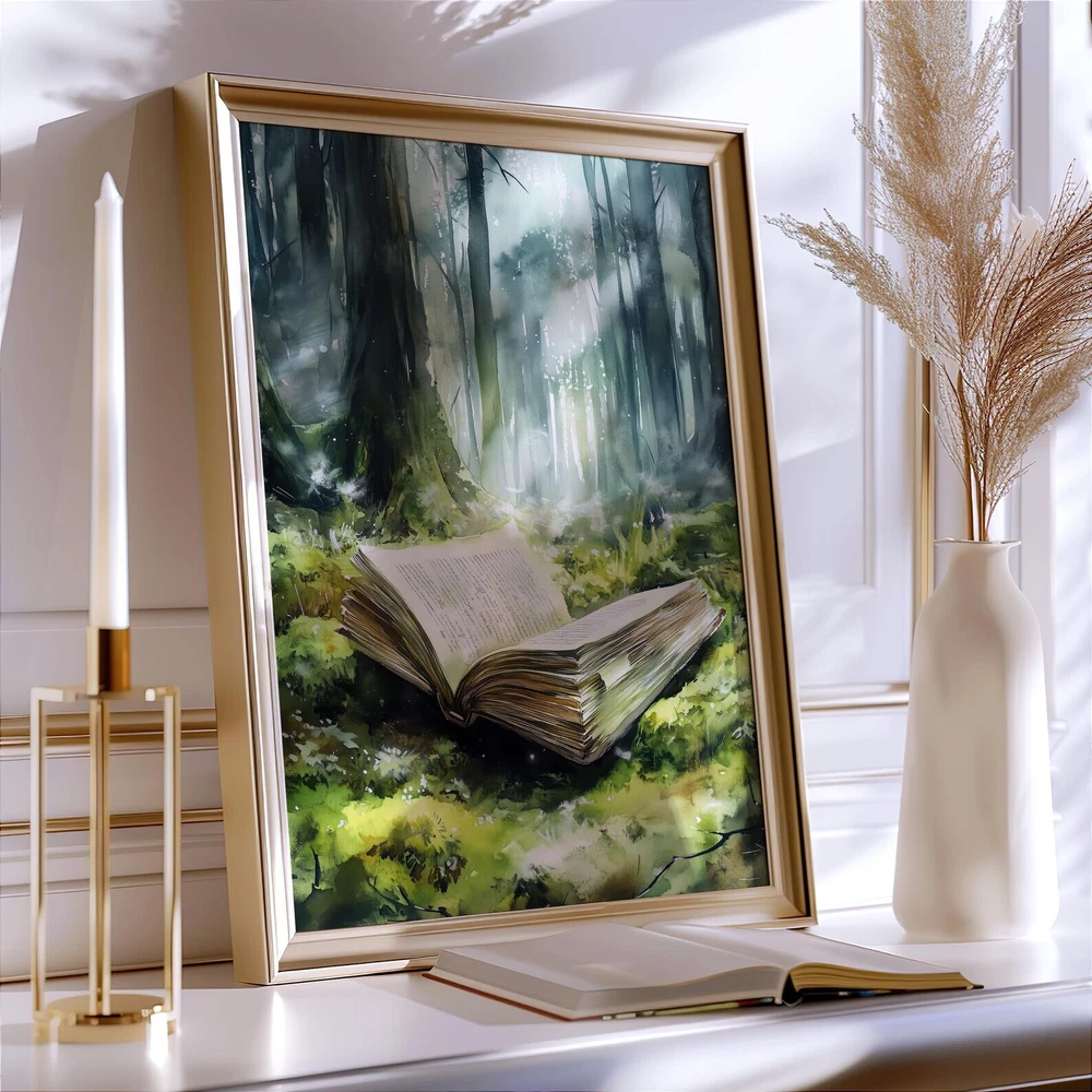 Forest Fantasy Book Art Print Magical Book Lover Wall Decor Enchanted Woodland Art Mystical Library Decor Material: Premium luster photo paper Print type: Inkjet printing One side printed + The finish provides the highest possible resolution and color saturation + Lasts up to 200 years in color and 400 years in black-and-white + Printed on high-quality resin-coated photo base paper medium + Posters can be hung with double-sided tape, tacks, or framed + Hand washing with a gentle cry cloth is recommended for extended durability I will hand select the best choice of paper for your chosen design to ensure top quality results for a beautiful, bright and luxurious print. All prints are sealed in cellophane slips for protection during transportation, and are shipped in a protective cardboard envelope.