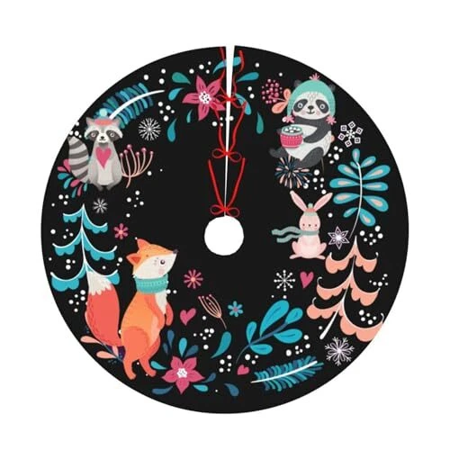 Forest Fox Christmas Tree Skirt Holiday 36" Christmas Forest Wreath Animal Fox