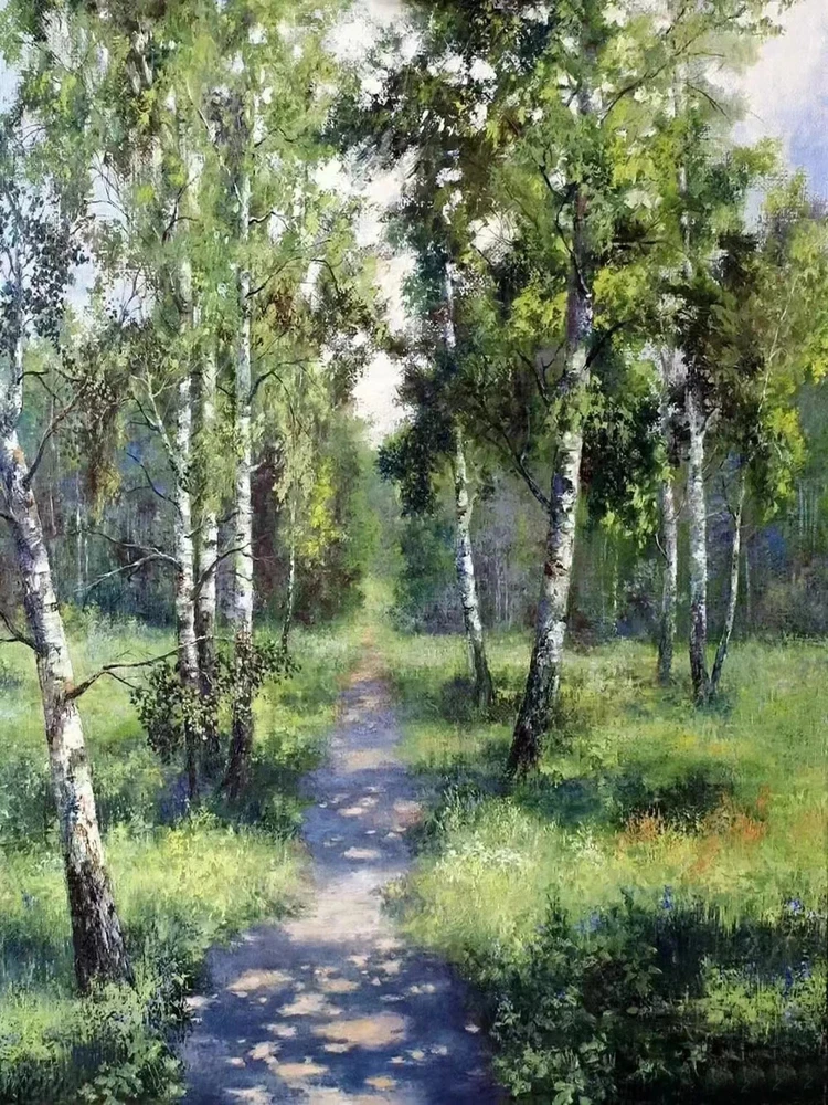 Forest Path Green Trees Oil Painting Unframed Canvas Print Australian Wall Art
