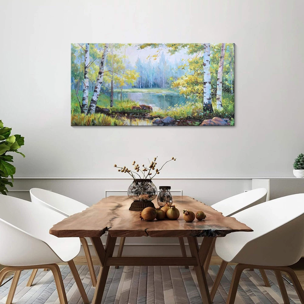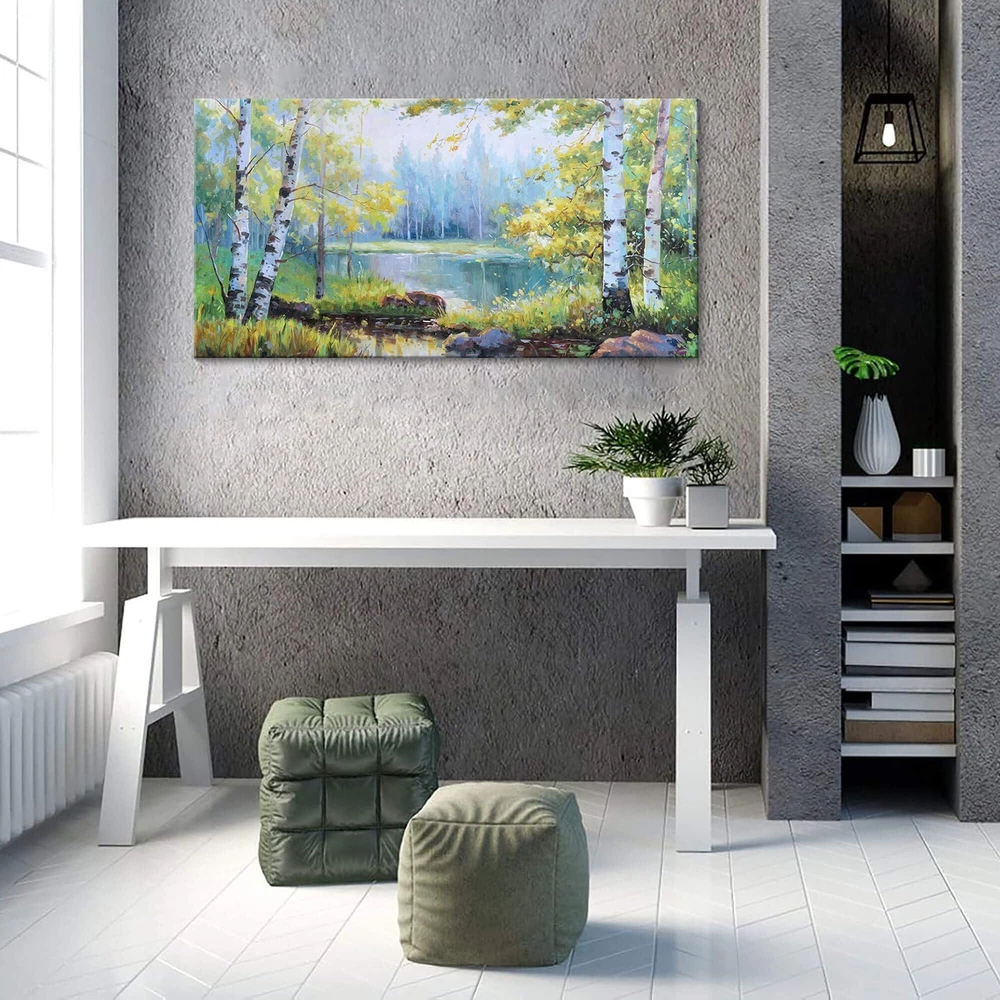 Subject: Forest Wall Decor wall art Bedroom decor Specification: Size:20x40Inches Material: canvas, wood, ink. Color: yellow,green Typology:Wrapped Canvas Features: - Premium natural canvas - Lightweight and easy to hang - Genuine archival pigment ink - UV-protective coating - Tight stretched and folded corners by hand - Gallery wrapped in sustainable, non-warping wood - Ready to hang with hanging hardware on the back - Professionally handmade with care! Great Inspirational Art for Wall Decor: Perfect choice for wall decor such as living room, bedroom, guest room, bathroom, kitchen, dinning room, meeting room, hallway, nurseries, coffee house, condo house, hotels, inn, Spa, Lounge, Sauna and other spaces of home, family, office, business, reflection and relaxation. 【Forest Wall Decor wall art size】Forest Wall Decor 20x40inches, this forest wall art a Yellow Green palette that accentuates the serene atmosphere. 【Easy to hang】There is hardware on the back of each piece, and we do put in the mounting parts when we package them, ready to be decorated. 【Canvas wall art】 We use waterproof canvas to protect the painting from moisture,It's the sturdy wood that supports the paintings. 【Funny Gifts】This wall art can be used as a meet-and-greet, housewarming, birthday, and other holiday gifts for friends and family. 【Picture artwork for wall】This wall decoration is suitable for decorating on the wall of living room office bedroom bathroom guest room corridor entryway and so on.