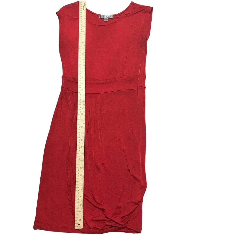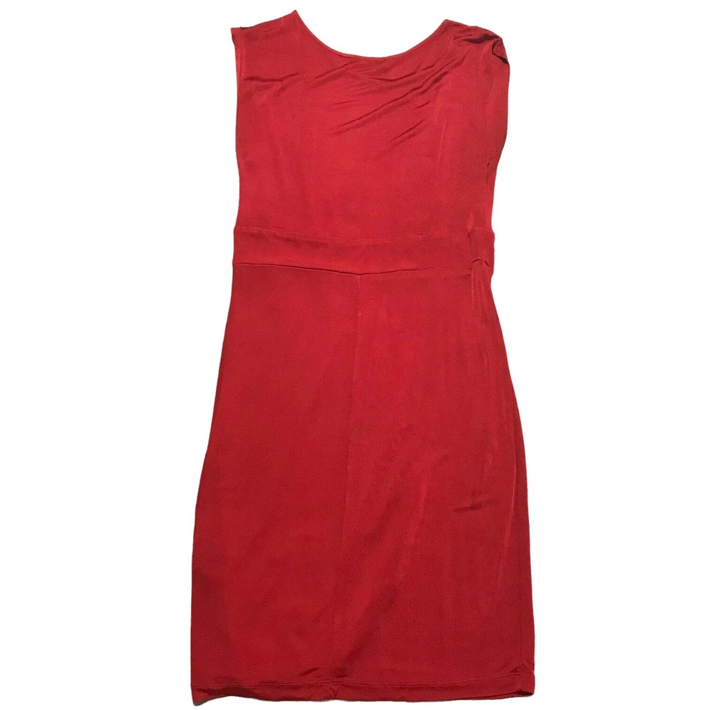 Seller Notes: “good pre-owned condition (noticeable flaw – small pull at waistline)” Material: Rayon Department: Women Color: Red Dress Length: Knee Length Closure: Pullover Vintage: Yes Neckline: Round Neck Pattern: Solid Fabric Type: Rayon Occasion: Party/Cocktail Sleeve Length: Sleeveless Season: Fall, Summer, Winter, Spring Size Type: Regular Style: Bodycon Features: Ruched, Stretch Brand: Forever 21 Size: L