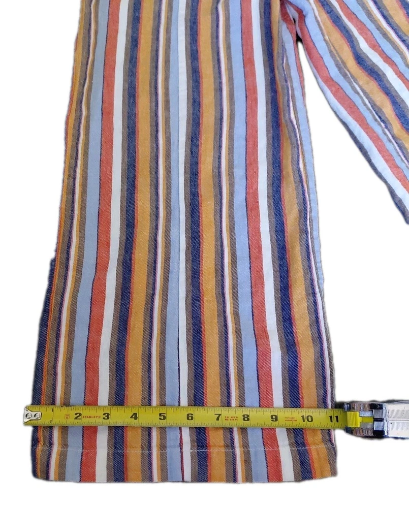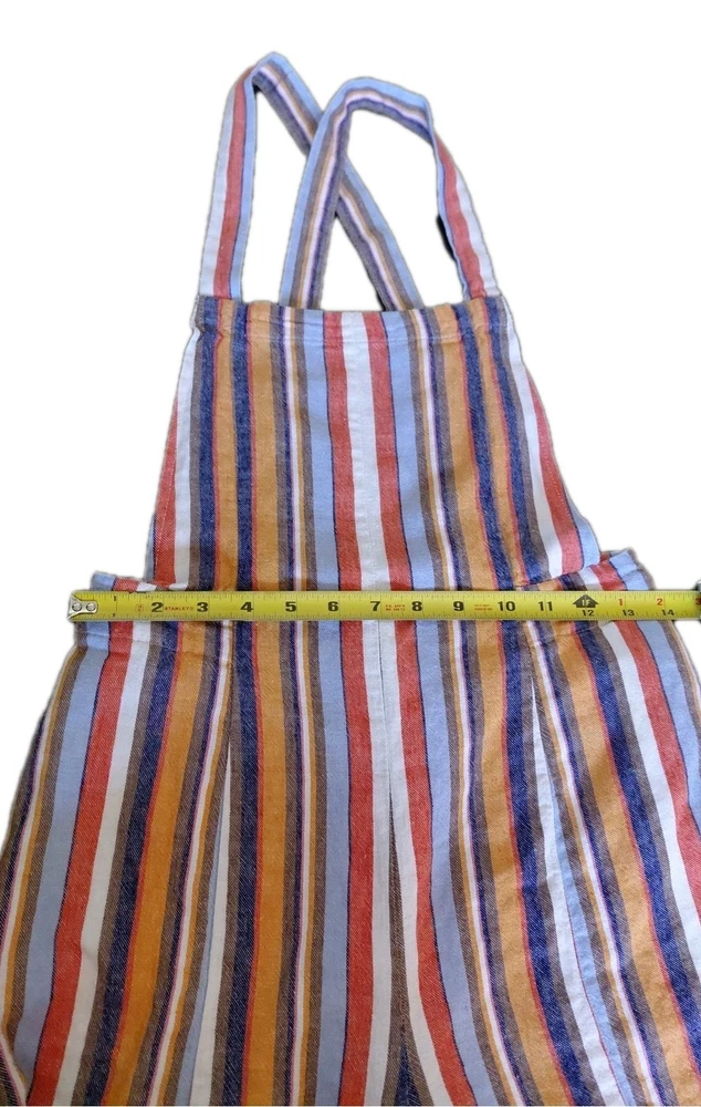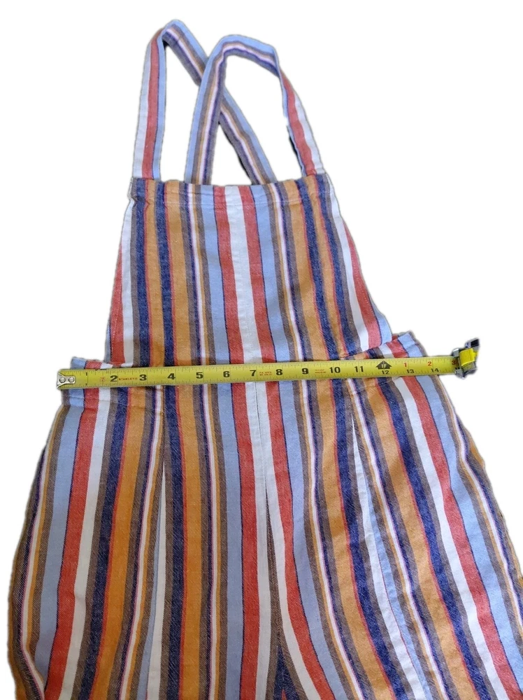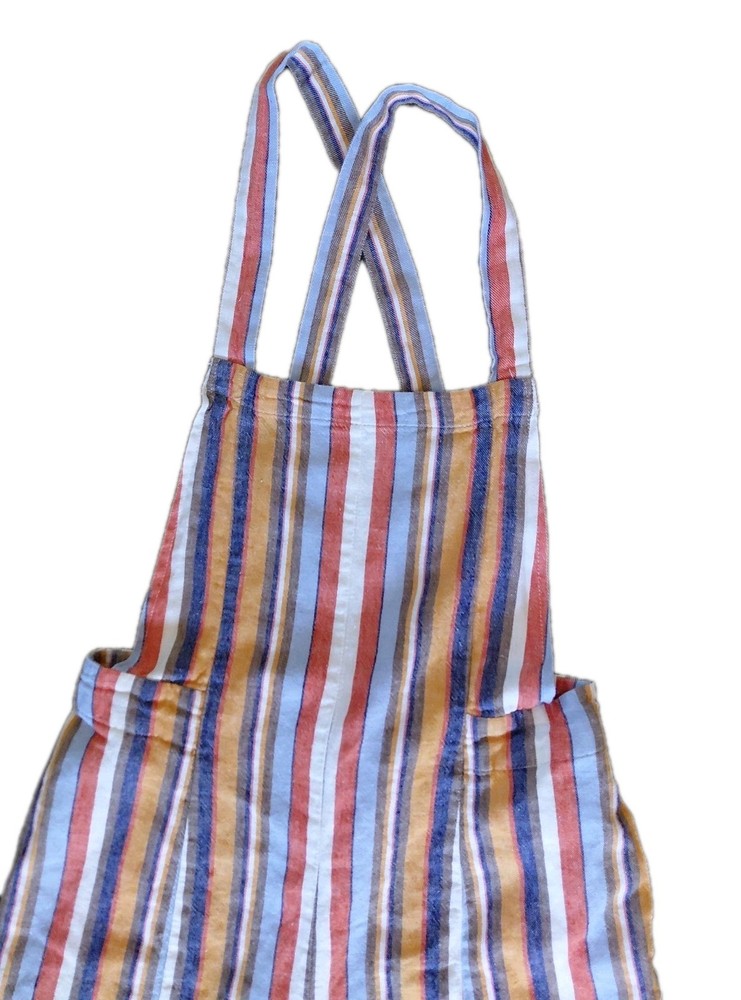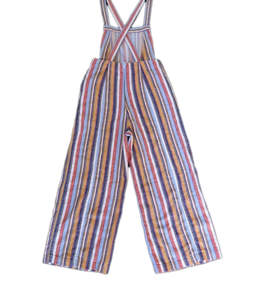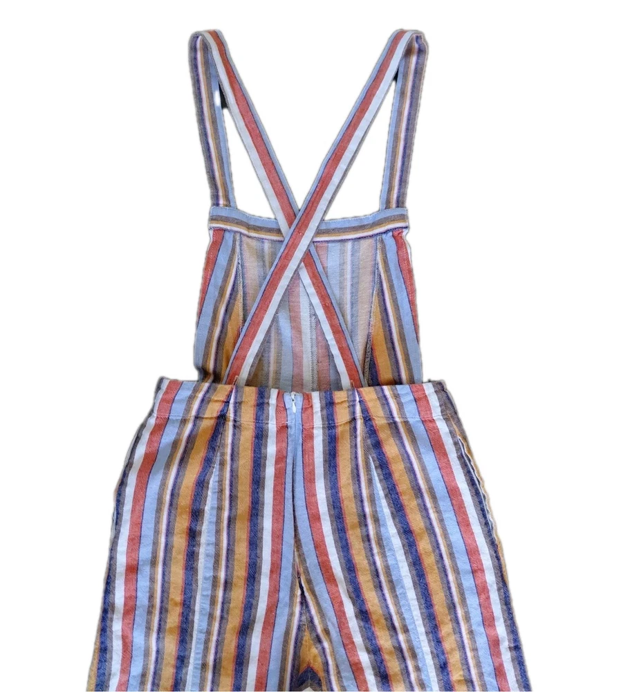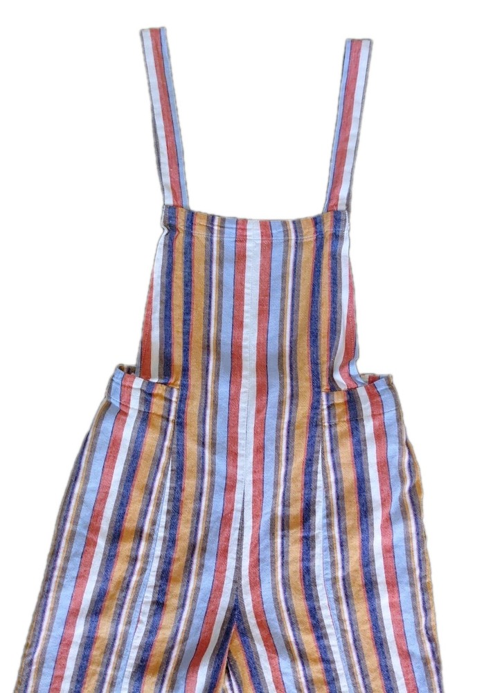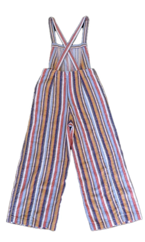 These Forever 21 Striped Overalls are the perfect blend of indie, boho, and whimsical styles, making them a standout piece for any woman's wardrobe. The wide-leg, cropped design with a square neckline and sleeveless feature adds a trendy and relaxed fit. The multicolor striped pattern and unique accented pockets give these overalls a playful and artistic touch, ideal for casual occasions or creative-inspired looks. Made from a comfortable linen and cotton blend, these overalls are a versatile and stylish choice for any season.
