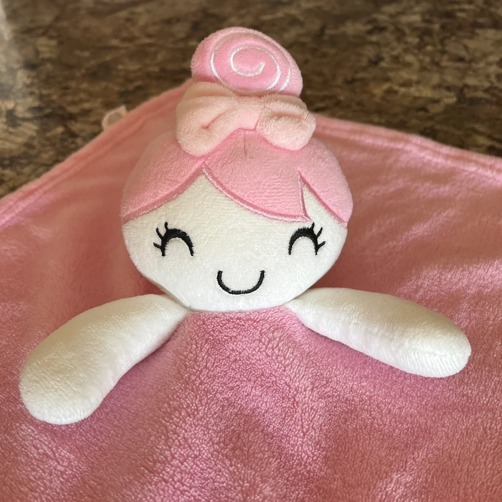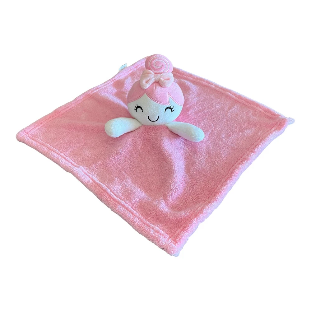Forever Baby Security Blanket Lovey Doll Girl Bun Bow Plush Pink Size 15"x15" Some wear due to use play/washing Please see photos for further condition/description