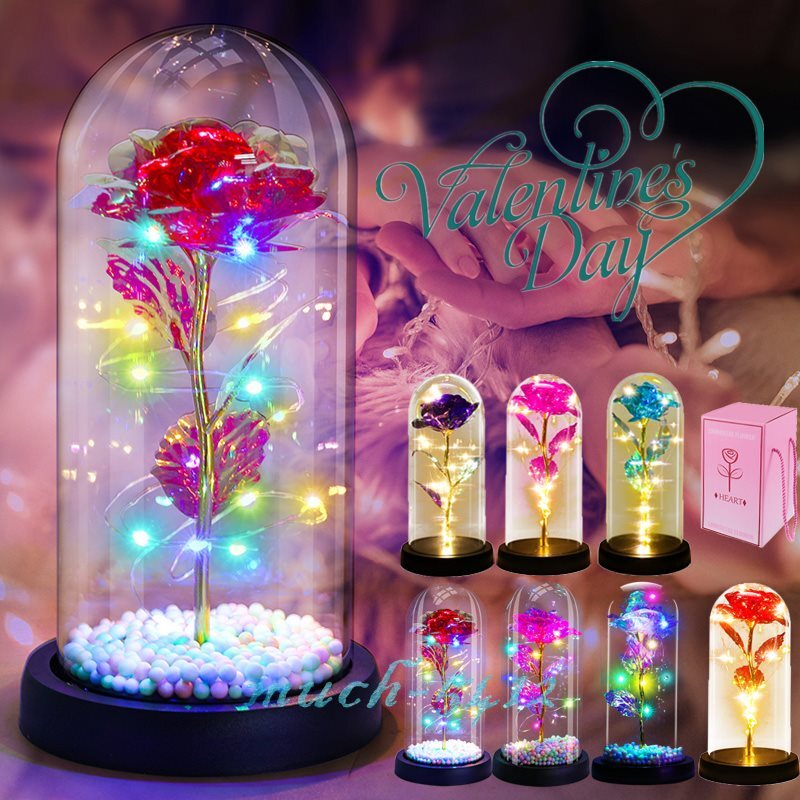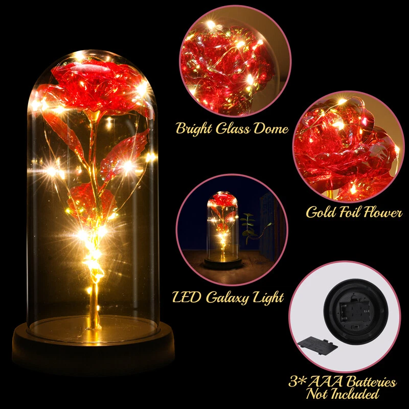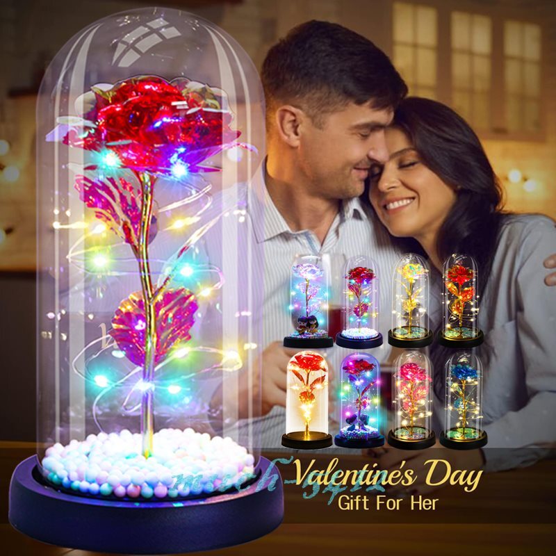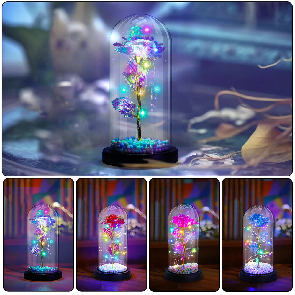 Forever Eternal Galaxy Rose In Glass Dome LED Flower Light Valentine's Day Gift
