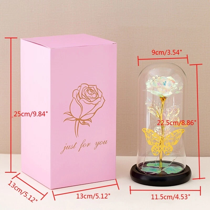 Forever Flower Gold Foil Rose Flowers in Glass Dome LED Light Valentine's Day Feature: premium glass, the lampshade is clear and durable. Special color makes the light be more beautiful and fashion. The tabletop ornament with LED light is suitable for home, bar, KTV, room table decor. Decorating your living room or bedroom with the desk ornament, which is so beautiful. Great family, lovers on Christmas Day, birthday, Valentine's Day or other special days. Specifications: Glass + Size: approx.11.5x22cm/4.53x8.66in Optional Colors: Rose, Red, Blue, Rose Red, Power Supply: 3 x AAA batteries (not included) Quantity: 1 Pc Note: Please allow 0-1cm error due to manual measurement. pls make sure you do not mind before you bid. Due to the difference between different monitors, the picture may not reflect the actual color of the item. Thank you! Package Contents: 1 x Rose Flower Night Light (other demonstration accessories in the picture is not included.)