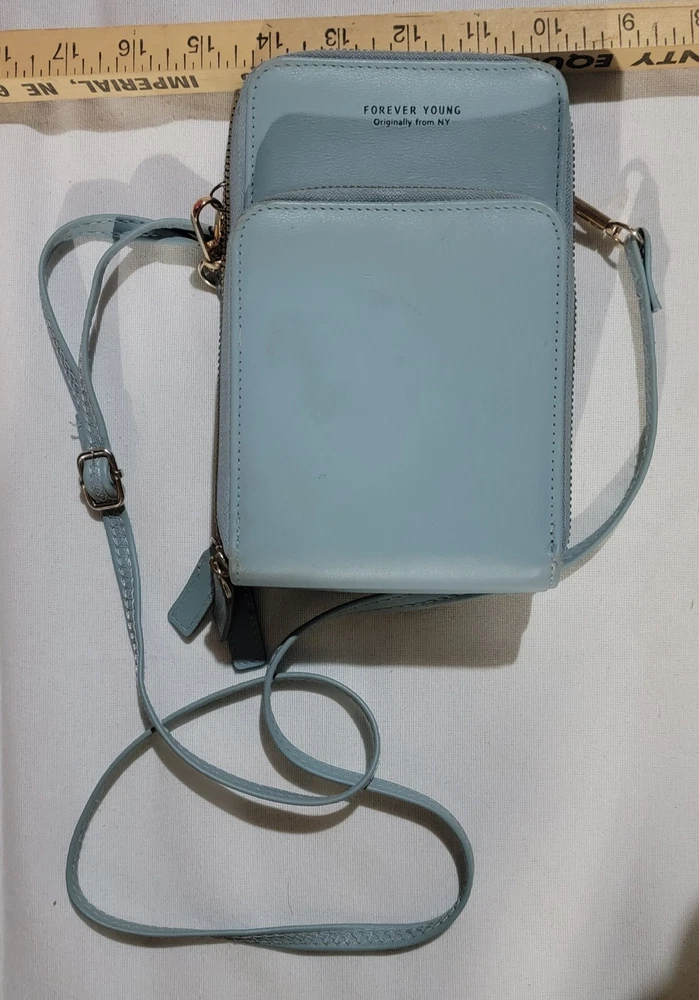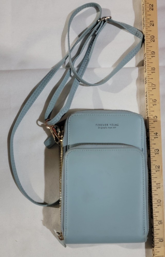 The Forever Young Originally From NY Shoulder Bag Purse in Light Blue is a stylish crossbody purse designed for women. Made from faux leather in a beautiful light blue shade, this bag exudes a youthful and trendy vibe. Perfect for everyday use, this purse adds a pop of color to any outfit while providing convenient hands-free transportation of your essentials. Perfect for any fashion-forward woman looking to make a statement with her accessories.