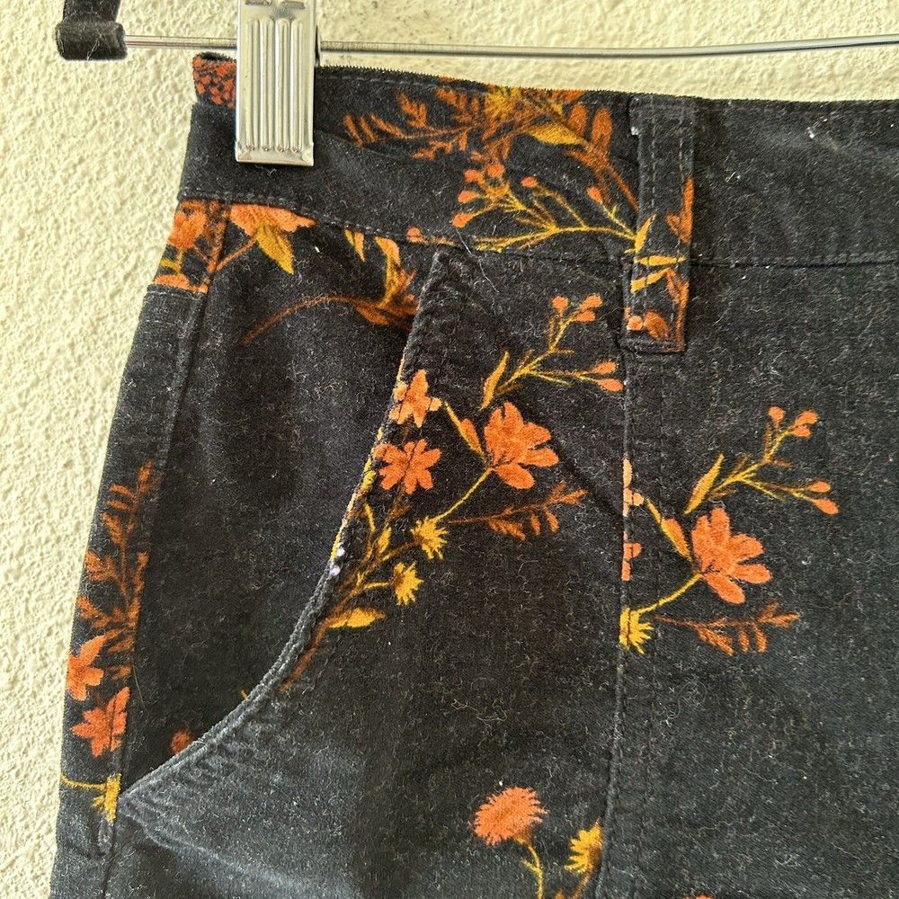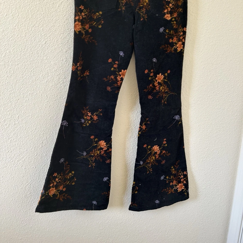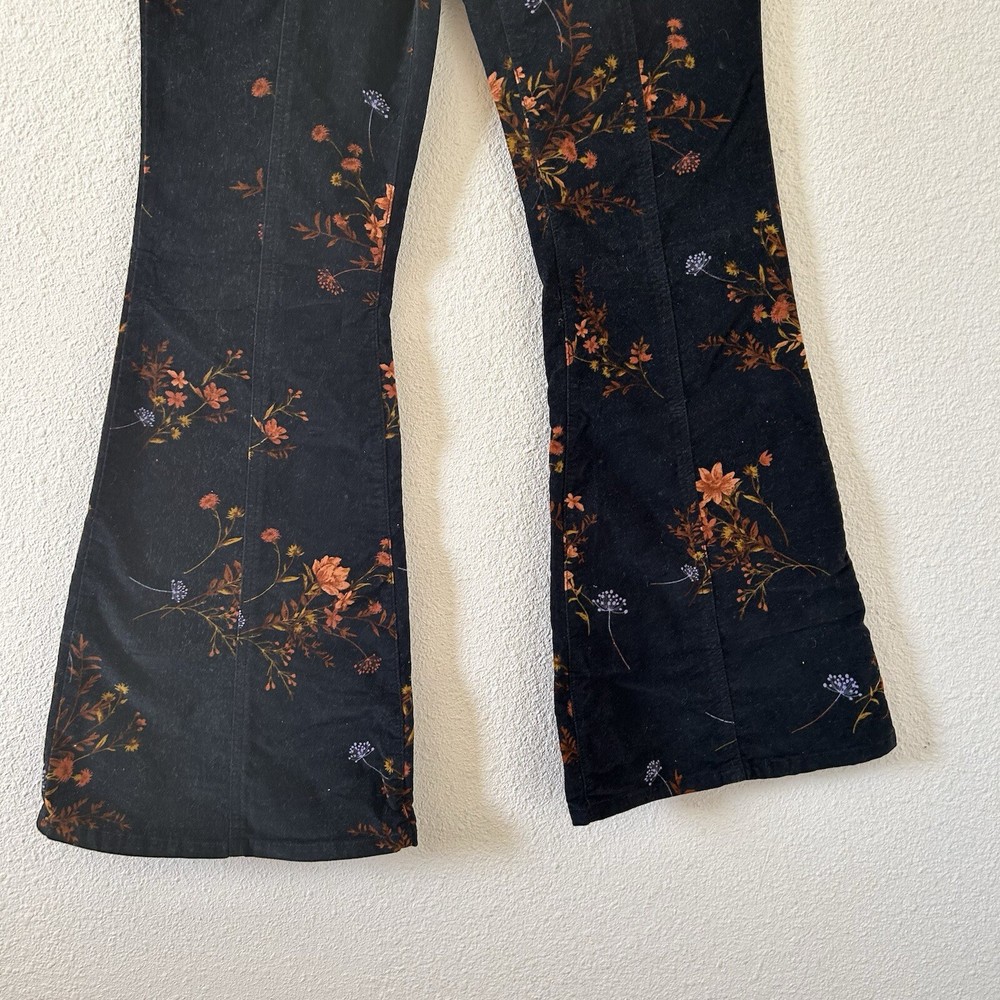 Forever21 Women’s Velvet Flare Pants Medium Floral Print Boho Festival Fall in great condition/has stretch/ black orange and blue colors / super cute 14” across waist 11”rise 30” inseam Approximate measurements All final sale #91 Casual Fall Boho Hippie Festival concert western cottage core coastal cowgirl