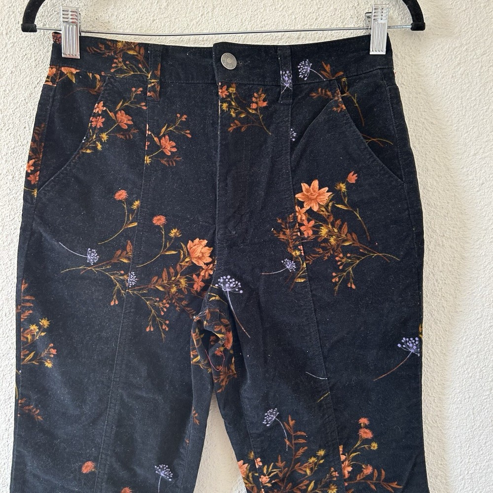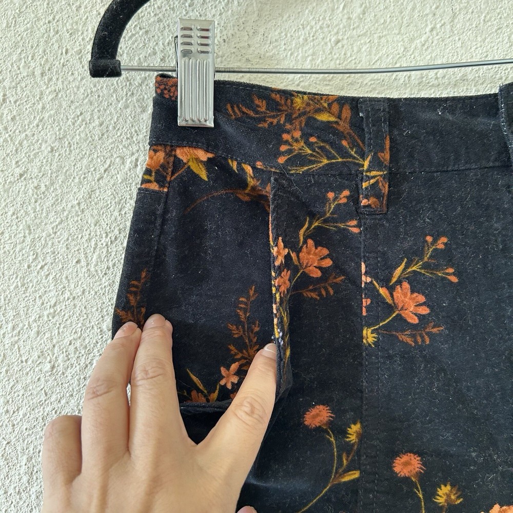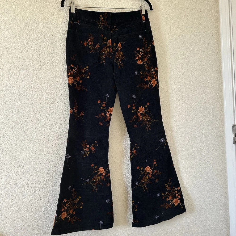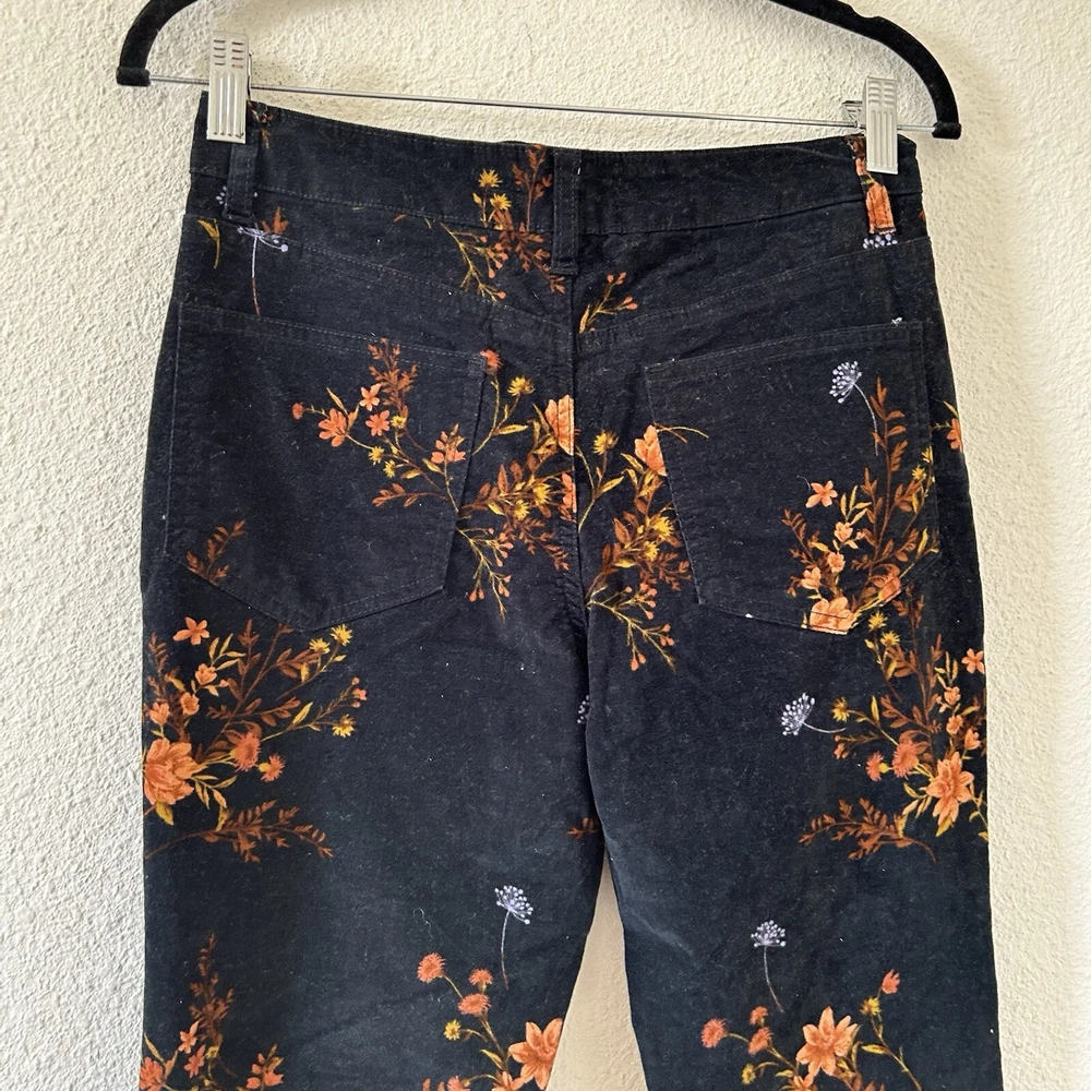 Forever21 Women’s Velvet Flare Pants Medium Floral Print Boho Festival Fall in great condition/has stretch/ black orange and blue colors / super cute 14” across waist 11”rise 30” inseam Approximate measurements All final sale #91 Casual Fall Boho Hippie Festival concert western cottage core coastal cowgirl