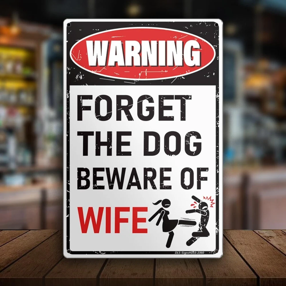 'Forget the Dog – Beware of Wife!' Funny Man Cave Decor for Men | BEWARE-WIFE Product Details Mounting Type: Wall Mount Product Dimensions: 12"L x 8"W Shape: Rectangular Style: Retro Pre-printed: Letter Item Weight: 3.84 ounces Manufacturer: MOLESS Country of Origin: China Color: BEWARE-WIFE Brand: MOLESS Material: Aluminum Theme: Man Cave Recommended Uses For Product: Man Cave Decor Funny Decor: The sign grabs attention with warning design, to add playful touch and fun to your man cave, garage, or basement. 12 x 8 Inches: Compact yet bold—ideal for any man cave zone wall decor. Explore more funny mancave decor signs on MOLESS Signs. High-Quality: Made from durable, rust-free 0.030 aluminum for long-lasting use indoors or outdoors. Easy to Setup: 4 pre-drilled holes (0.2") for effortless hanging or mounting anywhere. Great Gift Idea: Ideal for mancave enthusiasts—ideal for gifting. Cool stuff for men! Pro Tip: Colors may vary slightly due to screen settings. Reach out if you have any issues—MOLESS Signs is here to help!