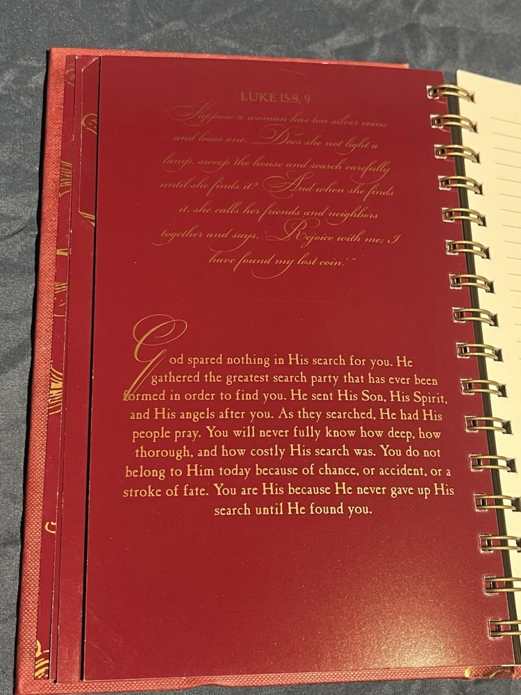 Experience the transformative power of introspection with the Forgiven Devotional Journal. Spiral-bound for durability, this journal features a sophisticated faux leather cover that exudes a sense of timeless charm. It’s a perfect companion for anyone seeking spiritual growth through the daily practice of reflection and gratitude. Crafted with care by Day Spring, a brand respected for their quality Christian inspirational materials, this journal is a testament to enduring design and purpose. Whether for personal use or as a thoughtful gift, it stands as a vessel for documenting your spiritual journey or offering words of encouragement to a loved one on the path of faith.
