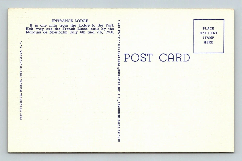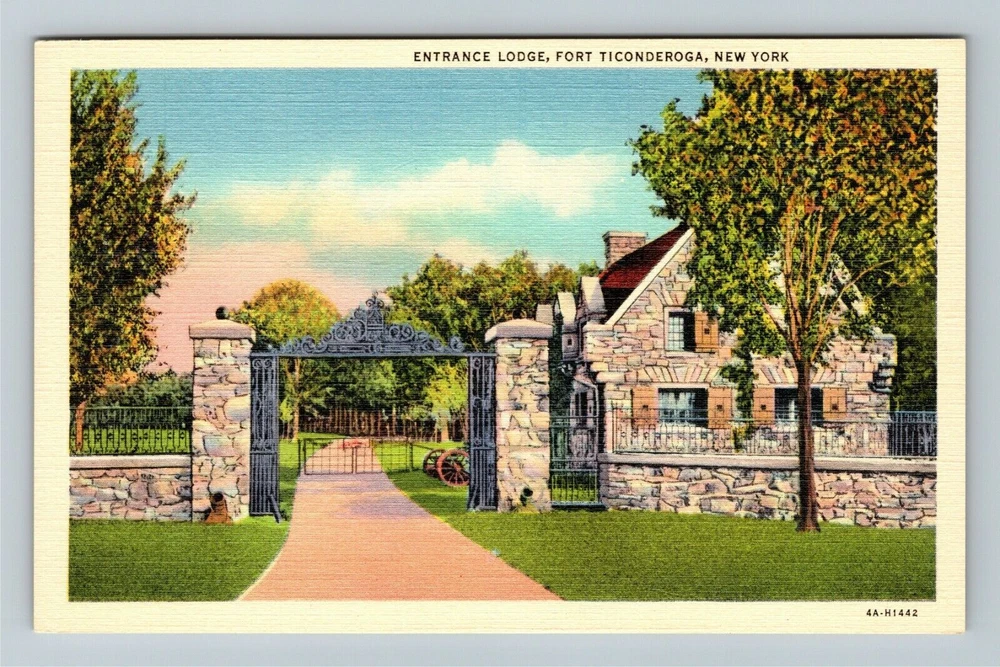 Fort Ticonderoga NY-New York, Entrance Lodge Vintage Souvenir Postcard