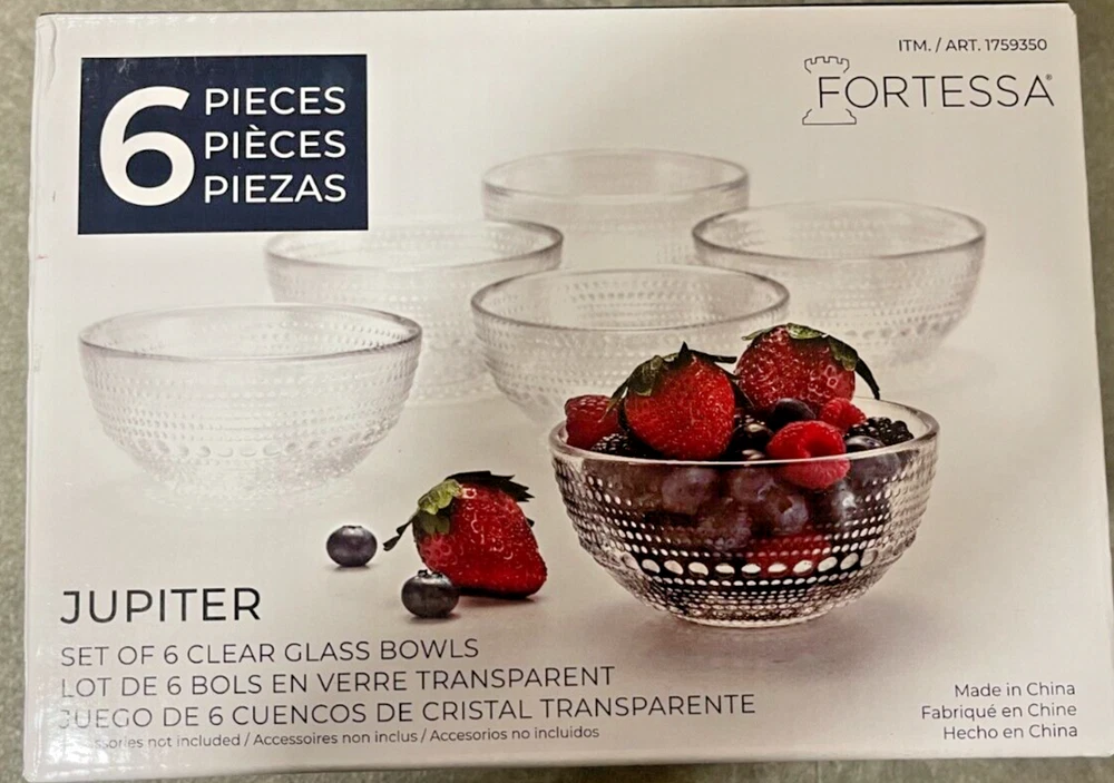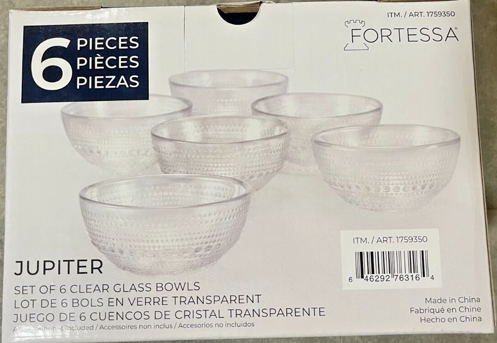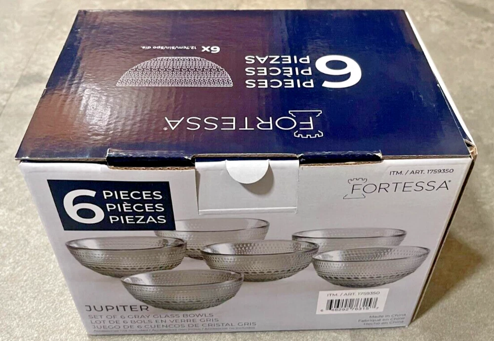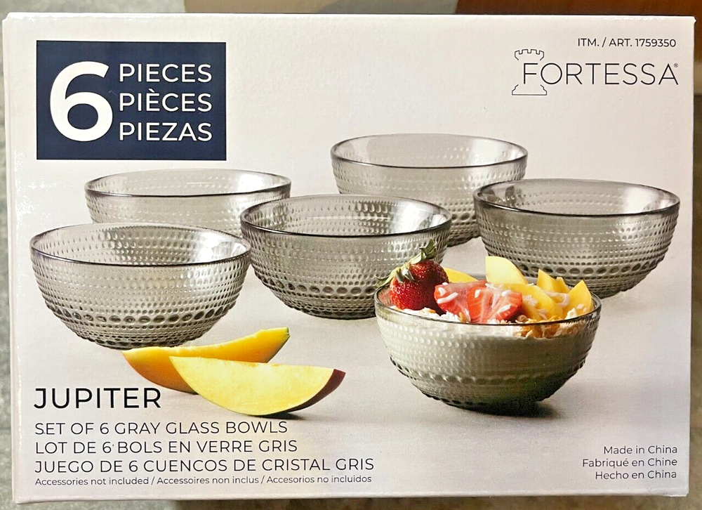 FAST FREE SHIPPING IN USA!!! ORDERS RECEIVED BEFORE 2PM - SAME DAY SHIPMENT!!! AFTER 2PM - NEXT DAY SHIPMENT!!! OUR WAREHOUSE WORKING MO-SAT(9am-9pm) CLEARANCE! Last pieces remaining—future availability currently unknown!!! "Discover our store! Explore a variety of interesting products at great prices. Don’t miss out—check it out now!" Fortessa Jupiter Vintage Glassware Collection 5 Inch Cereal Salad Dessert Snack All-Purpose Bowl 6 Pack, Smoke Gray, 14 Ounce (6 Pack) Features: Set of 6 Cereal Bowls Elegant Hand-Crafted Aesthetic Design Works with Traditional or Casual Place Settings Beaded Design Texture Dishwasher Safe About this item CLARITY AND QUALITY - With the new Fortessa Jupiter Collection All-Purpose cereal bowls, you can bring the wildly popular Jupiter beaded glassware style to your breakfast table. You can capitalize of the shift to durable, casual elegance from a brand you have trusted in your home for almost 30 years. Our drinkware is highlighted by an unmatched attention to detail and quality. VERSATILE AND DISHWASHER SAFE - Storing and cleaning are a breeze. Use these bowls for more than just cereal! Great for desserts, salads, snacks, and much more! They are stackable and all items in the Jupiter collection are 100% dishwasher safe, for a stress-free clean every time. SIZING: These bowls are perfect for all kinds of uses. Including for cereals, desserts, salad, and so much more! They can hold up to 14 ounces and measure 5-inch diameter with a 2 inch wide base. TRUSTED FOR ALMOST 30 YEARS: At Fortessa we aim to bring memorable experiences to your table every day. Offering Glassware, Dinnerware, Flatware and so much more, we strive to show our customers the difference between a meal and an experience. JUPITER COLLECTION: Our Jupiter collection is also available in 2 drinking glass sizes, 2 cake stand sizes, can coming soon a mixing glass and margarita glass! Available in up to 10 classic and trendy colors with more coming soon. Product Details Inspired by Parisian flea market finds, Jupiter bowls help set a festive table with a pop of color. Bands of beaded detailing have timeless elegance and add to each piece’s handcrafted aesthetic. Includes: 6 Jupiter Bowls Features: Bowl (6): 5” x 2.3”, 13.5 oz Available in CLEAR, GREY.