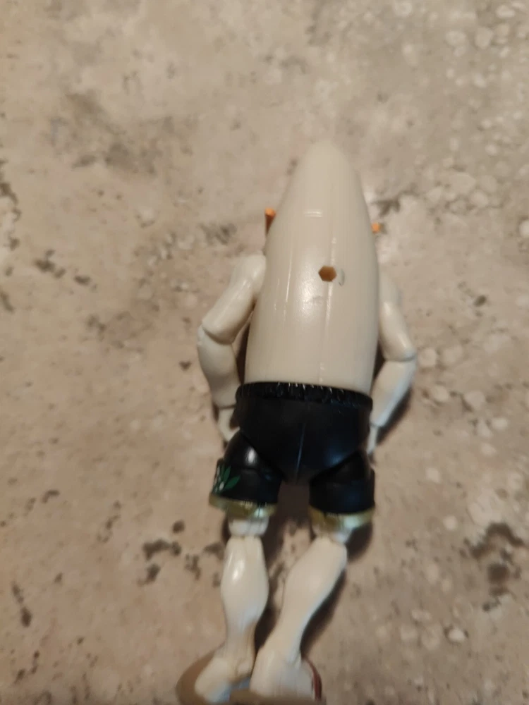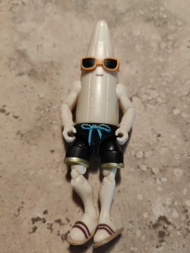 The Fortnite 4.75" Unpeely Banana Jazwares Action Figure features the character Unpeely from the popular franchise Fortnite. Produced by Jazwares, this collectible toy is perfect for fans of the game looking to add a unique and recognizable character to their collection. This is preowned showing typical signs of wear from age, use and storage including scratches and buffs and a small green mark ono the back of the head area. It sells as shown - no hat or accessories.