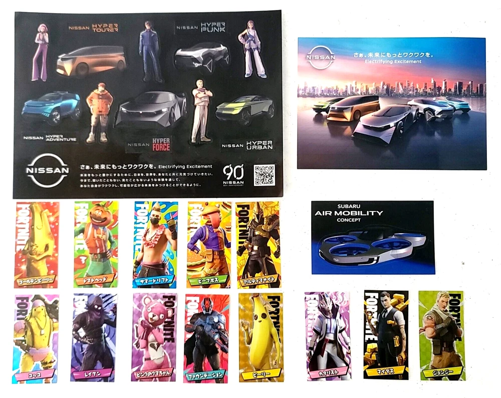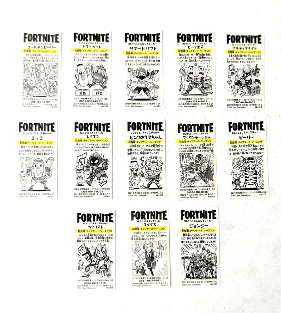 Item Title ◆ Fortnite Skin Sticker Complete 13 Set ( Coro Coro Comic Bonus) ◆ With Tokyo mobility show Sticker 3 Set /// Total Set of 16 /// Description ◆ 【 Excellent 】 Please check the photos. ◆ 📸 Colors in images between the item list and the detail page may appear differently following the light condition. •*¨*•.¸¸♪ ✧ •*¨*•.¸¸♪ ✧ •*¨*•.¸¸♪ ✧ •*¨*•.¸¸♪ ✧ We will pack carefully 🌸 ✈ ✈ ✈ SHIPPING with tracking number ✈ ✈ ✈ Our shipping schedule is ✈1 business days. We use different shipping companies for different customer locations. All purchases to the same address are combined into one box upon payment. Weight and size limits vary by country, so some exceptions to this process may apply. 📹 💰📸 Please check the following 📸💰 📹 Import duties, taxes, and charges are not included in the item price or shipping cost. These charges are the buyer's responsibility. Please check with your country's customs office to determine what these additional costs will be prior to bidding or buying. We take video of the entire packing process. This is to check later for any mistakes in the items sent to you. If you find any mistake, damage or dirt on the item, please message us anytime. 💰 💵 💴 Refund Policy for Returned Products 💴 💵 💰 In the case of a return for the buyer's convenience after the product has been shipped, the buyer will be responsible for shipping costs at the time the product is shipped. After confirming the returned merchandise, we will refund the total amount paid by the customer minus the shipping costs. 💵 💴 💰 Additional Fees 💰 💴 💵 If you live in an area where remote delivery fees are charged, you will be asked to pay an additional fee. •*¨*•.¸¸♪ ✧ •*¨*•.¸¸♪ ✧ •*¨*•.¸¸♪ ✧ •*¨*•.¸¸♪ ✧ If you have any questions or request about items, please feel free to ask us. Sakura blooms Japan 🌸 https://www.ebay.com/str/sakurabloomsjapan