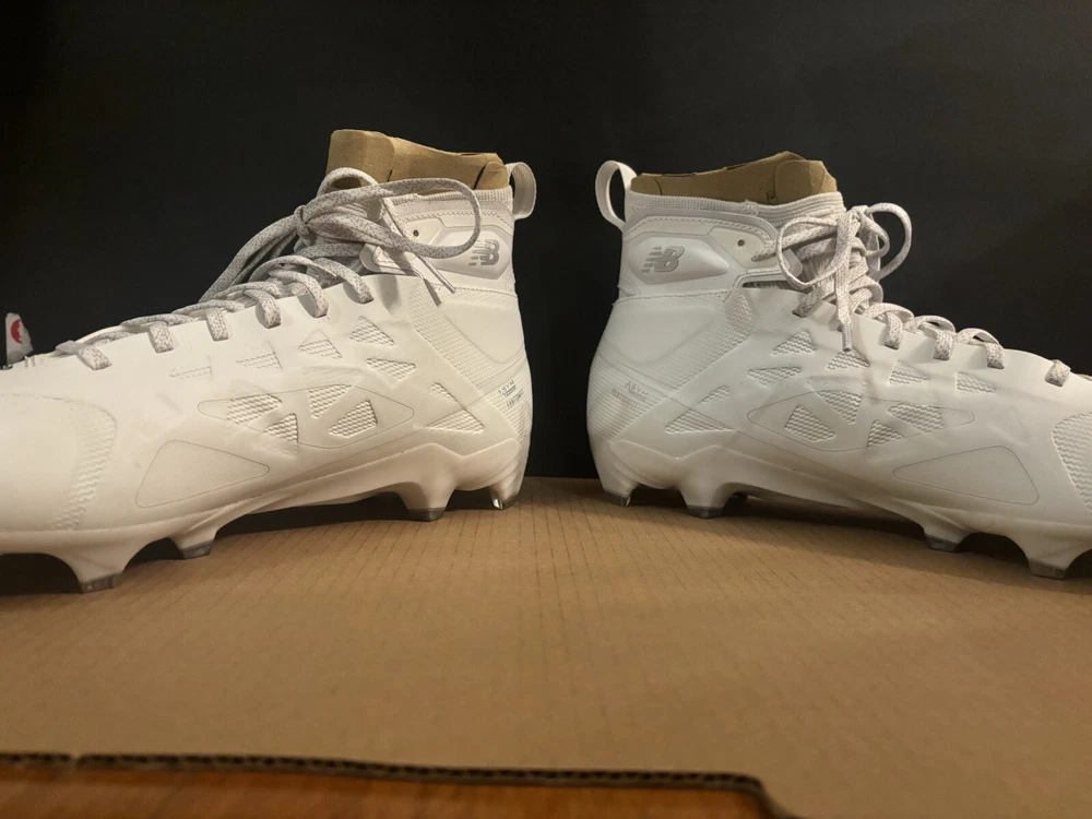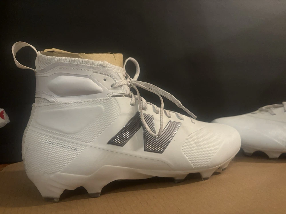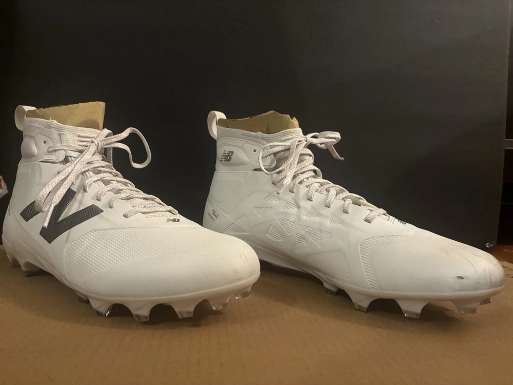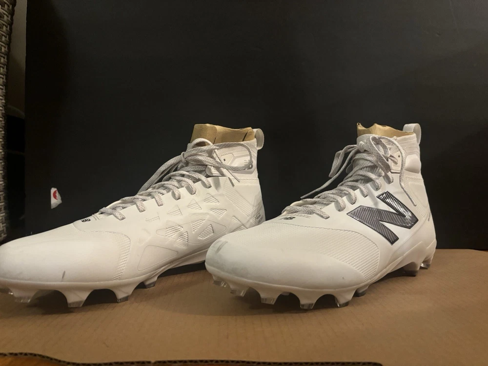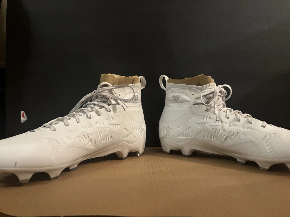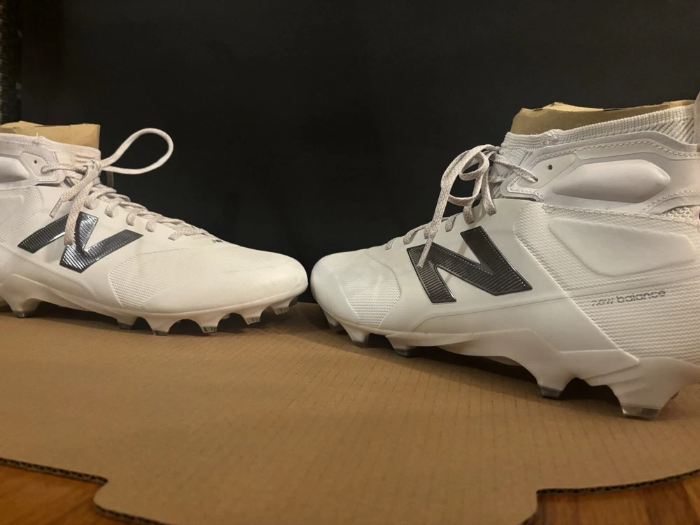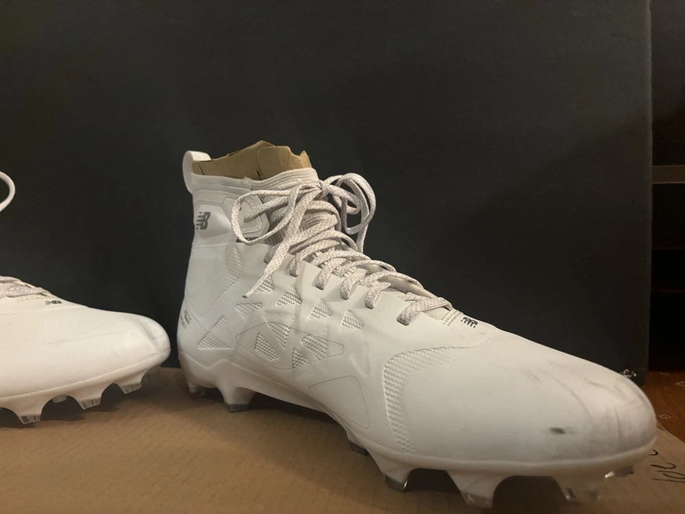 The New Balance Fortress cleats, worn only once, size 13 remain in excellent condition. These shoes are known for their superior comfort and support, featuring a durable sole and a stylish design. The minimal wear ensures that they still look and feel almost brand new, making them a great choice for anyone looking to add a reliable pair of cleats to their collection. These clears are ready to provide the performance and comfort New Balance is known for.