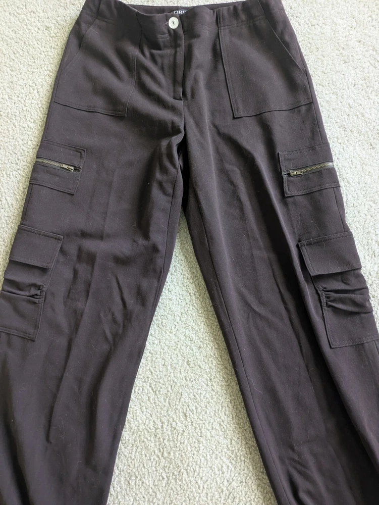 Super cute and very well made, heavy cargo pants! Very comfortable. 31in waist, 31in inseam, 10in waist to crotch, 4 pockets - zippers are not actual pockets though, tie ankles for adjustable fit!