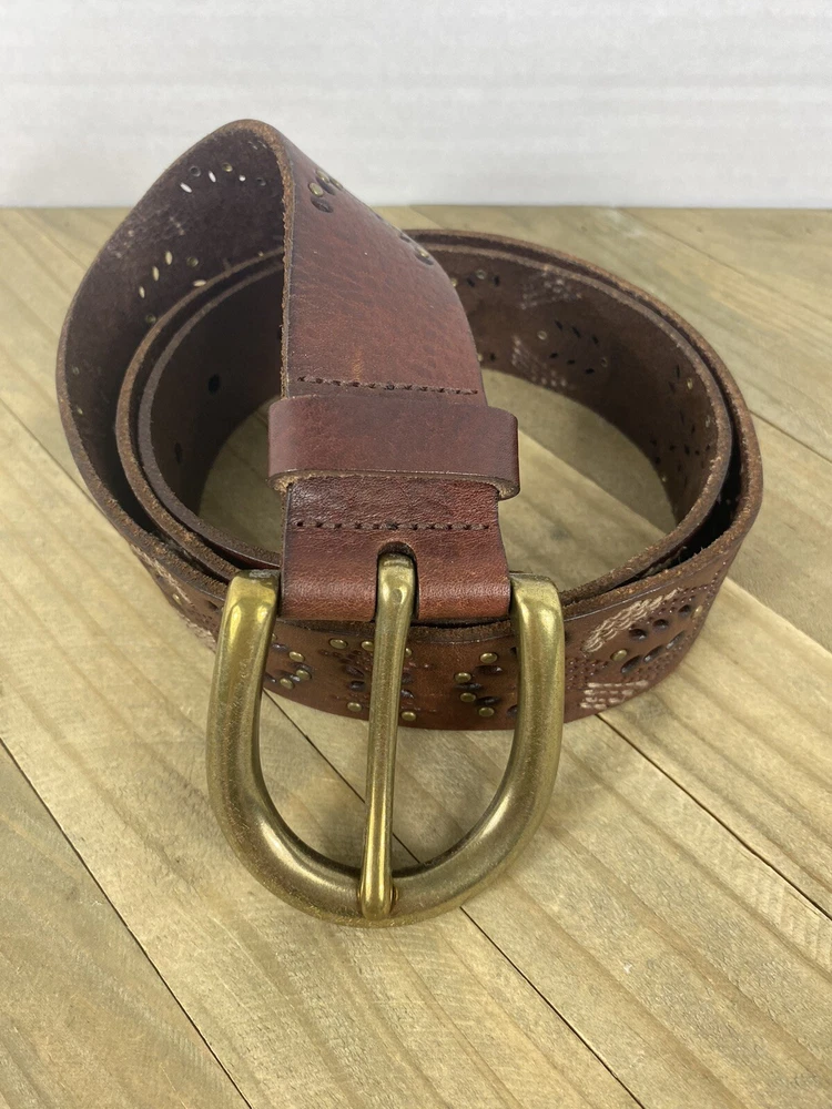 This Fossil belt is in good condition! It is new with the tags still on. From the buckle to the edge of the belt it measures 43” and is a size Large. If you have any questions please feel free to ask! Thank you for looking!