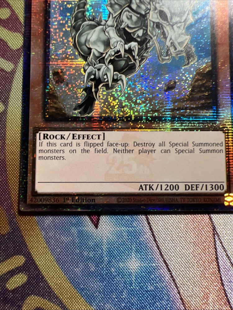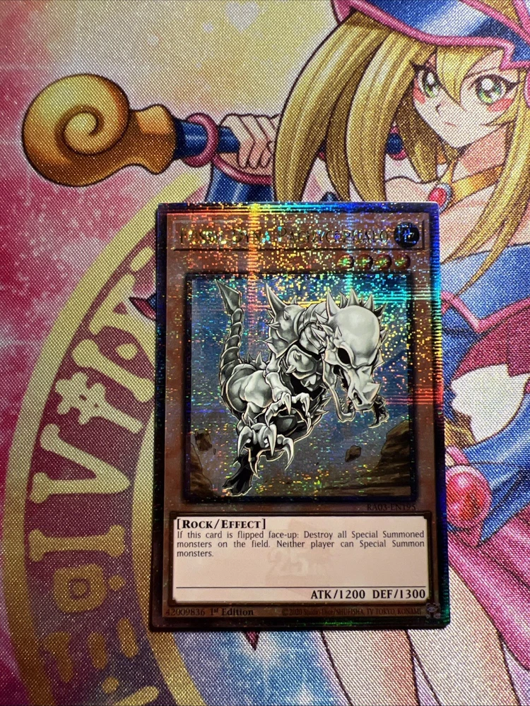 This rare and highly sought-after Fossil Dyna Pachycephalo card is a must-have for any serious Yu-Gi-Oh! TCG collector. With its Earth attribute and Rock creature/monster type, this card is sure to add some powerful punch to your deck. This 1st edition card from the Fossil set is a Secret Rare with the card number RA03-EN195. It is manufactured by Konami and features an effect type card. Don't miss your chance to add this amazing card to your collection!