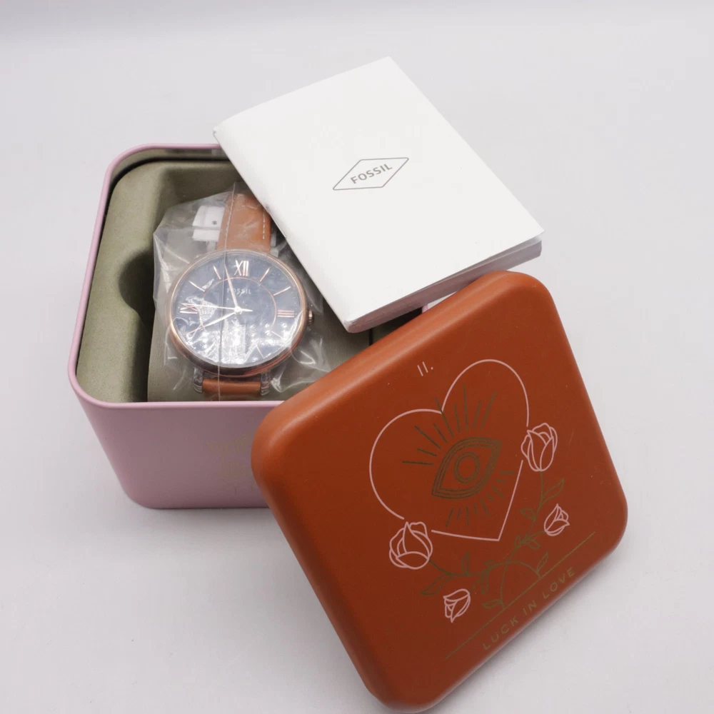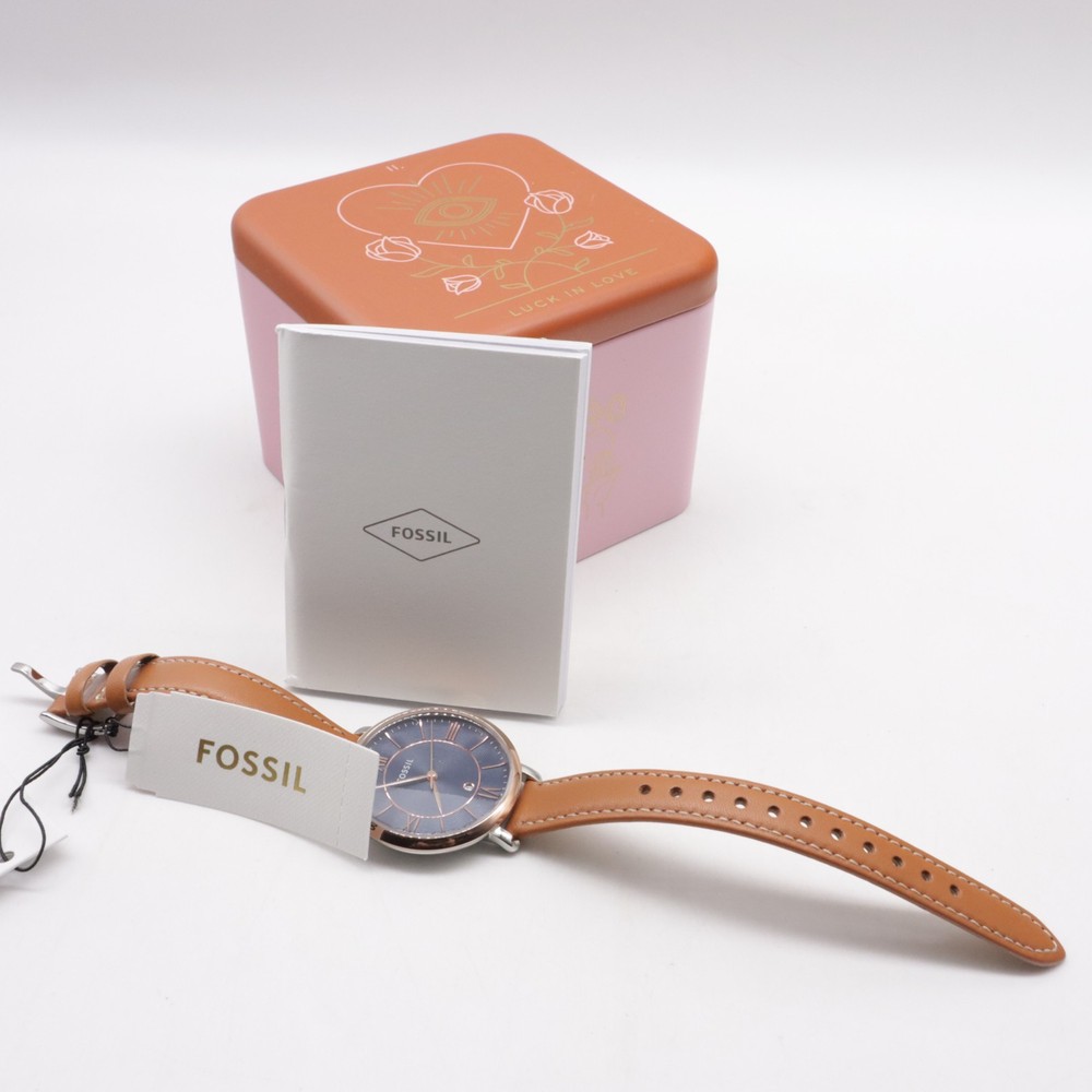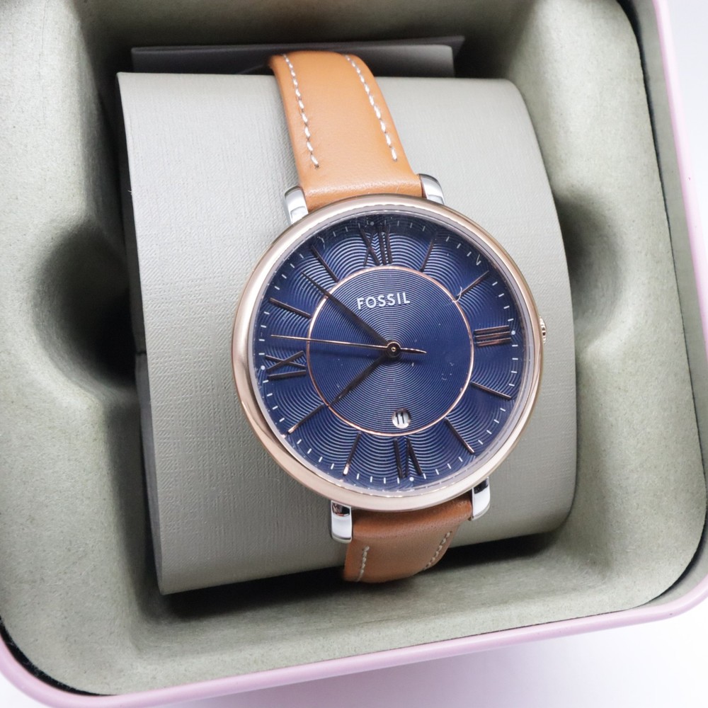 The Fossil ES4274 Jacqueline watch is a stylish and functional wristwatch designed for women. It features a blue dial with easy-to-read analog display, complemented by silver and rose gold case colors. The watch has a quartz movement powered by a battery, with a water resistance of up to 30 meters. The brown leather band adds a touch of elegance to the overall design, making it a versatile accessory for everyday wear.