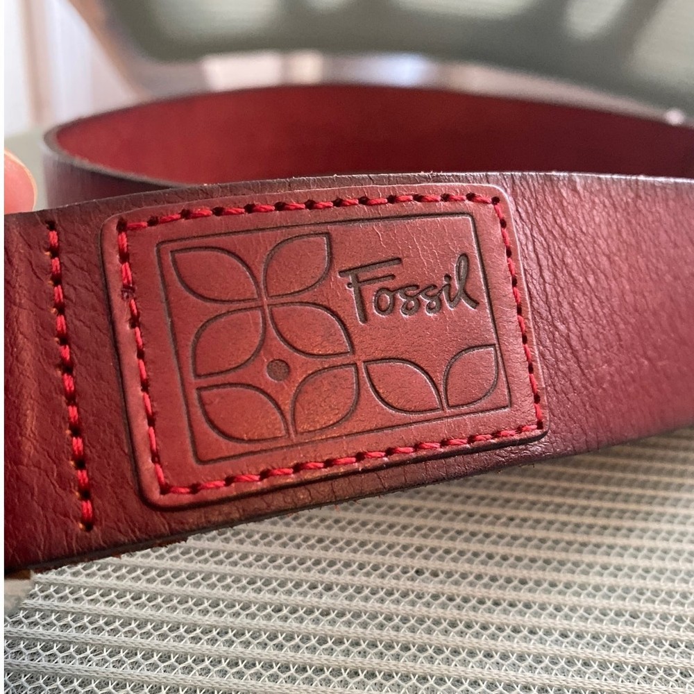 Fossil Genuine Dark Red Leather Buckle Belt for Medium Men