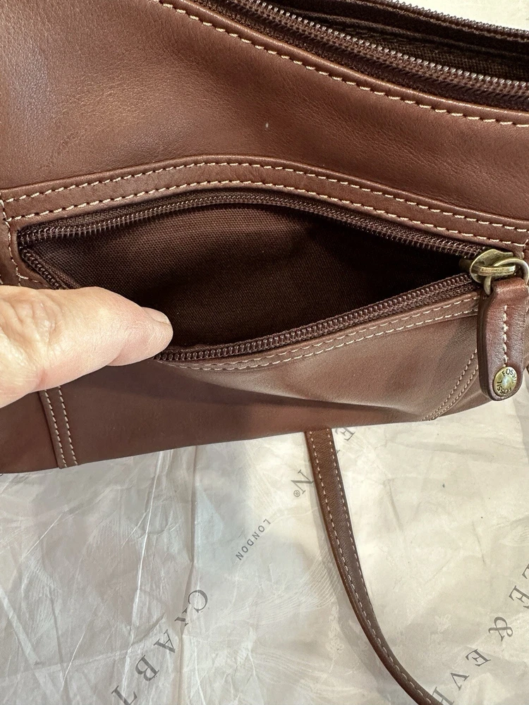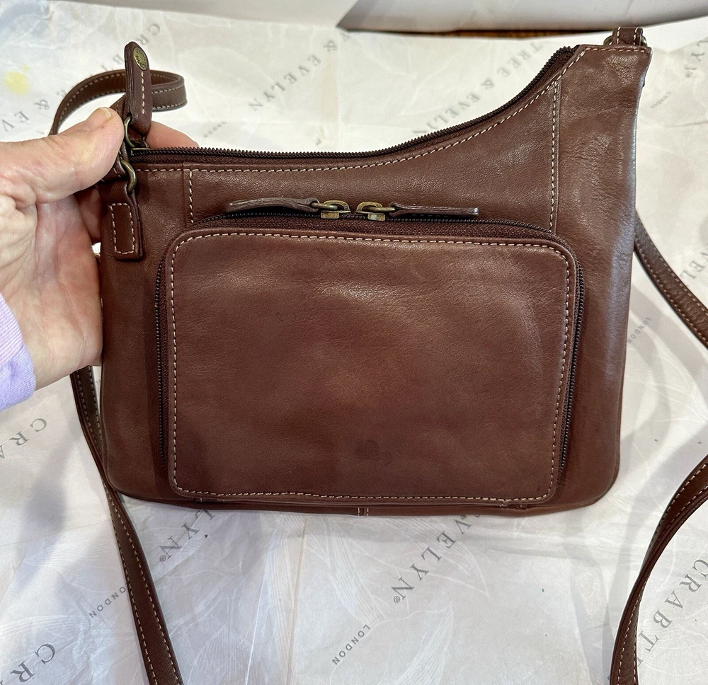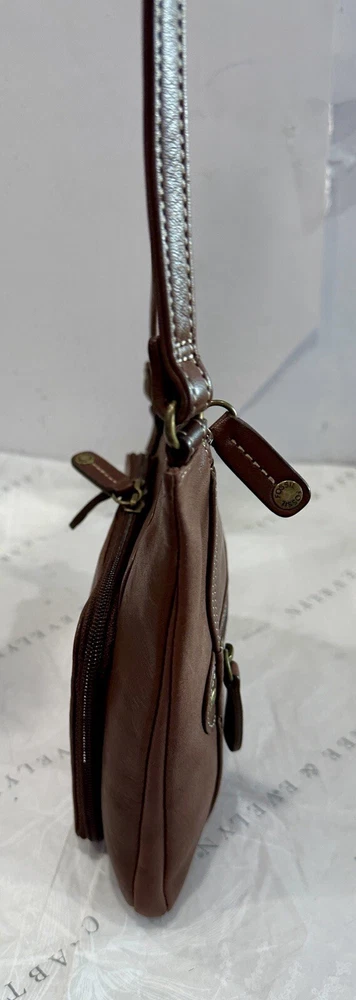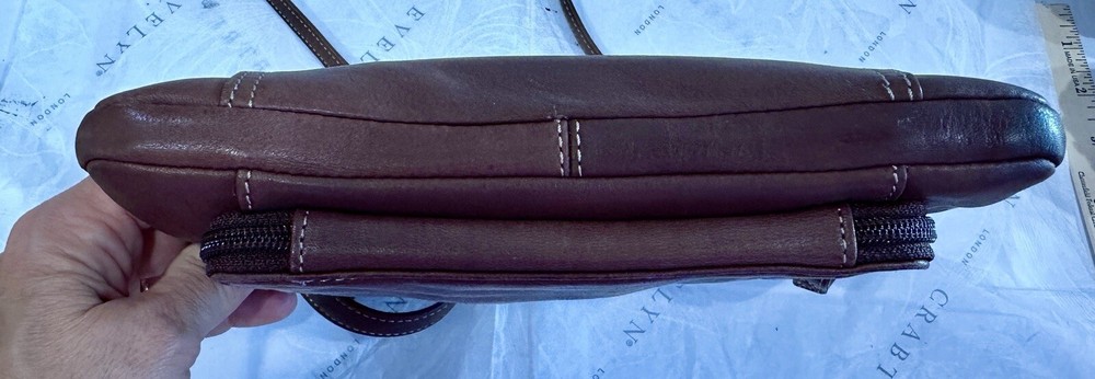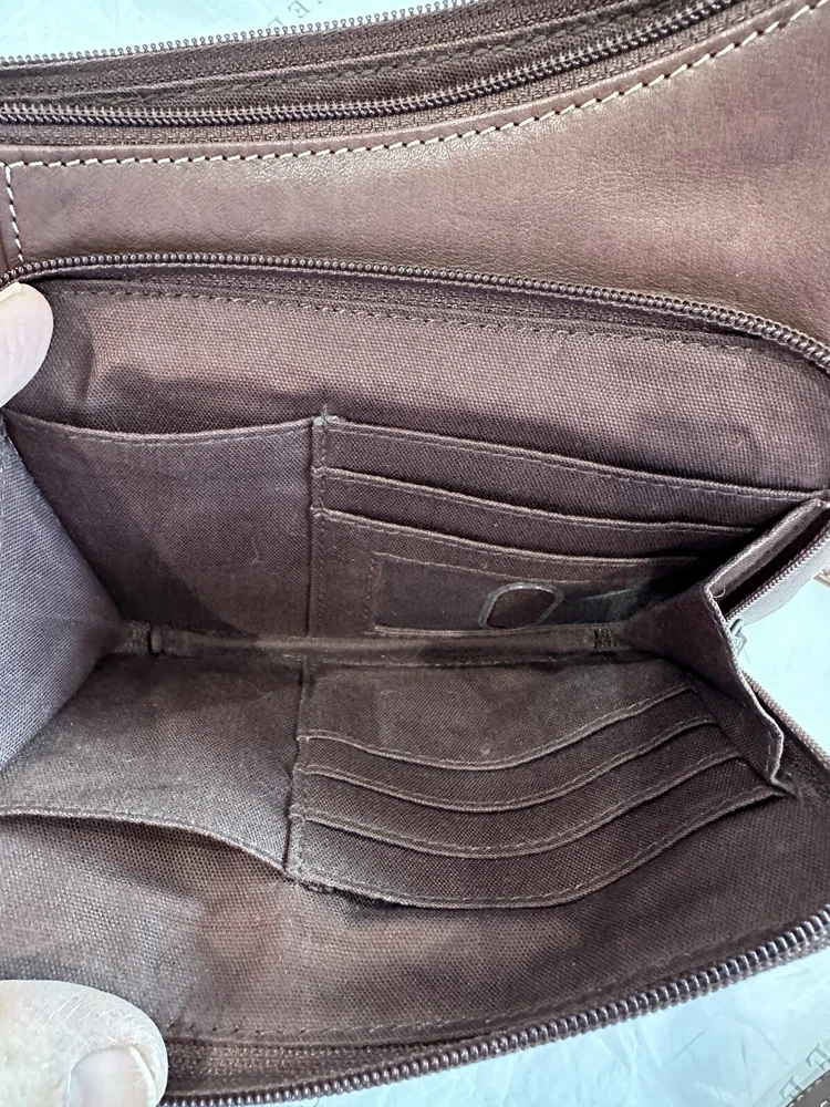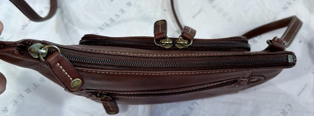 Fossil SL362 Cognac Brown Leather Slim Crossbody Organizer Bag A++4