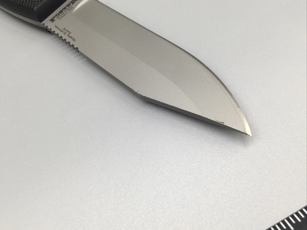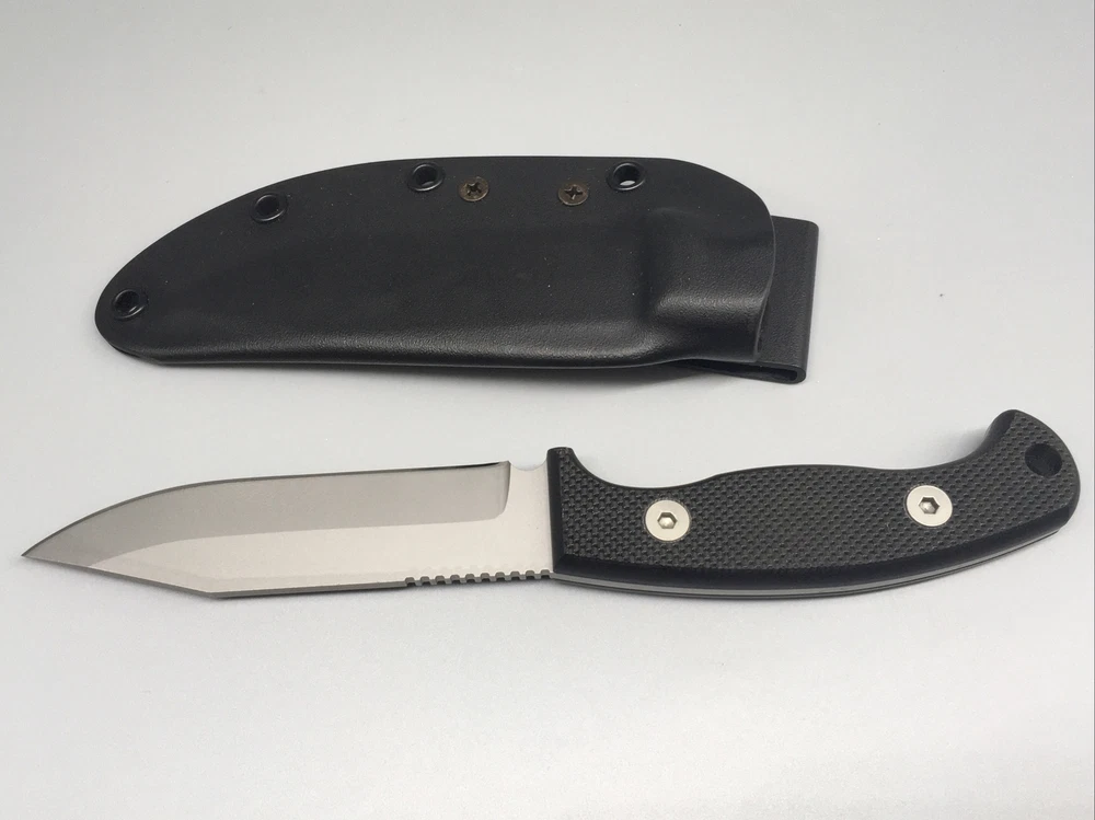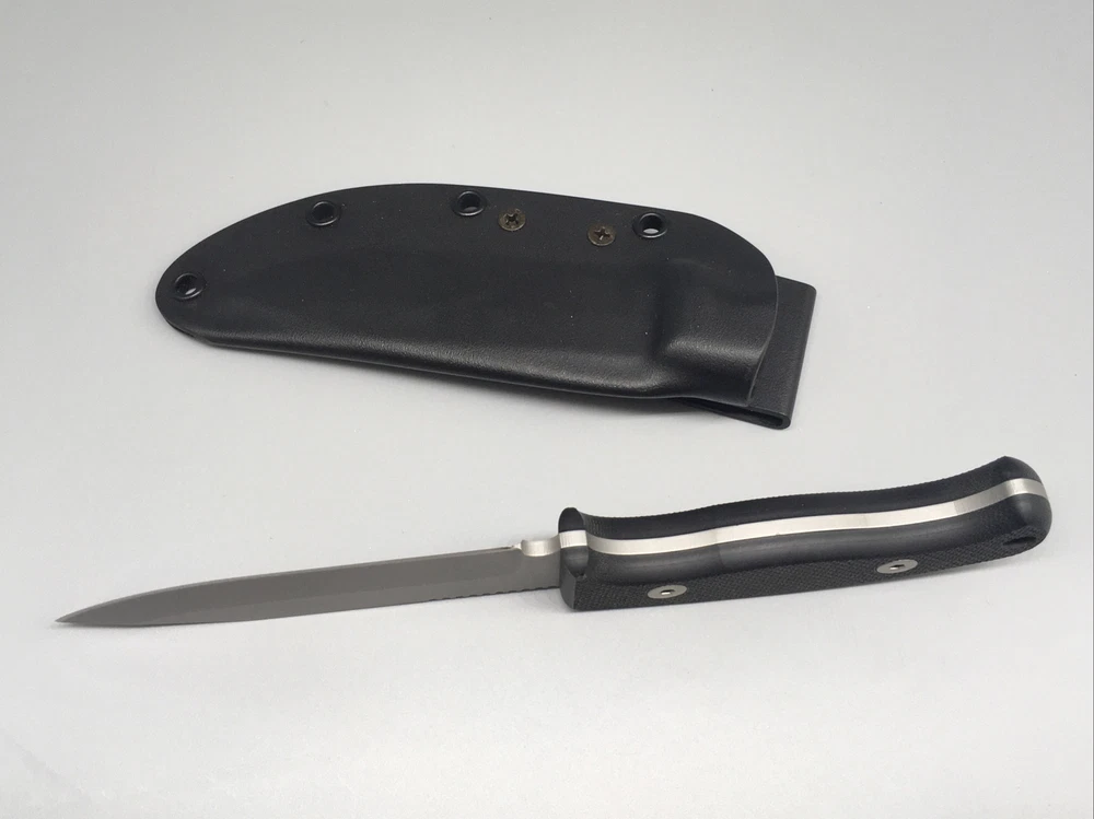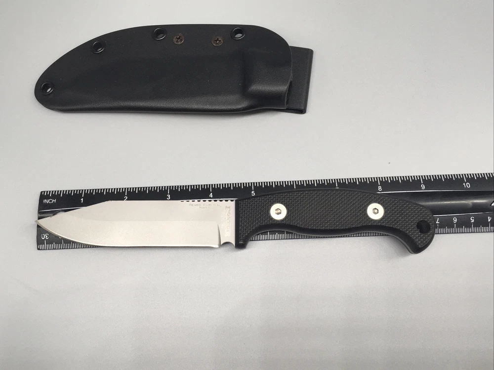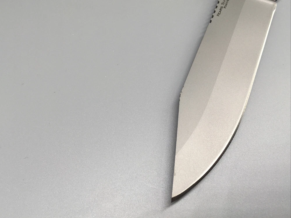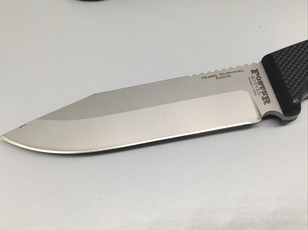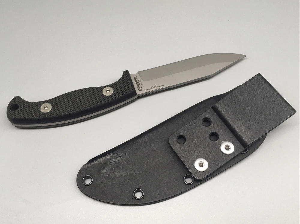 Vintage Foster Fears Survival Knife with Kydex Sheath. Please review pictures for cosmetic condition. Great condition. Some black marks on blade as pictured. I think this may be discontinued and vintage, early 2000s but please do your own research. I saw some excellent reviews about this brand/style. *r3