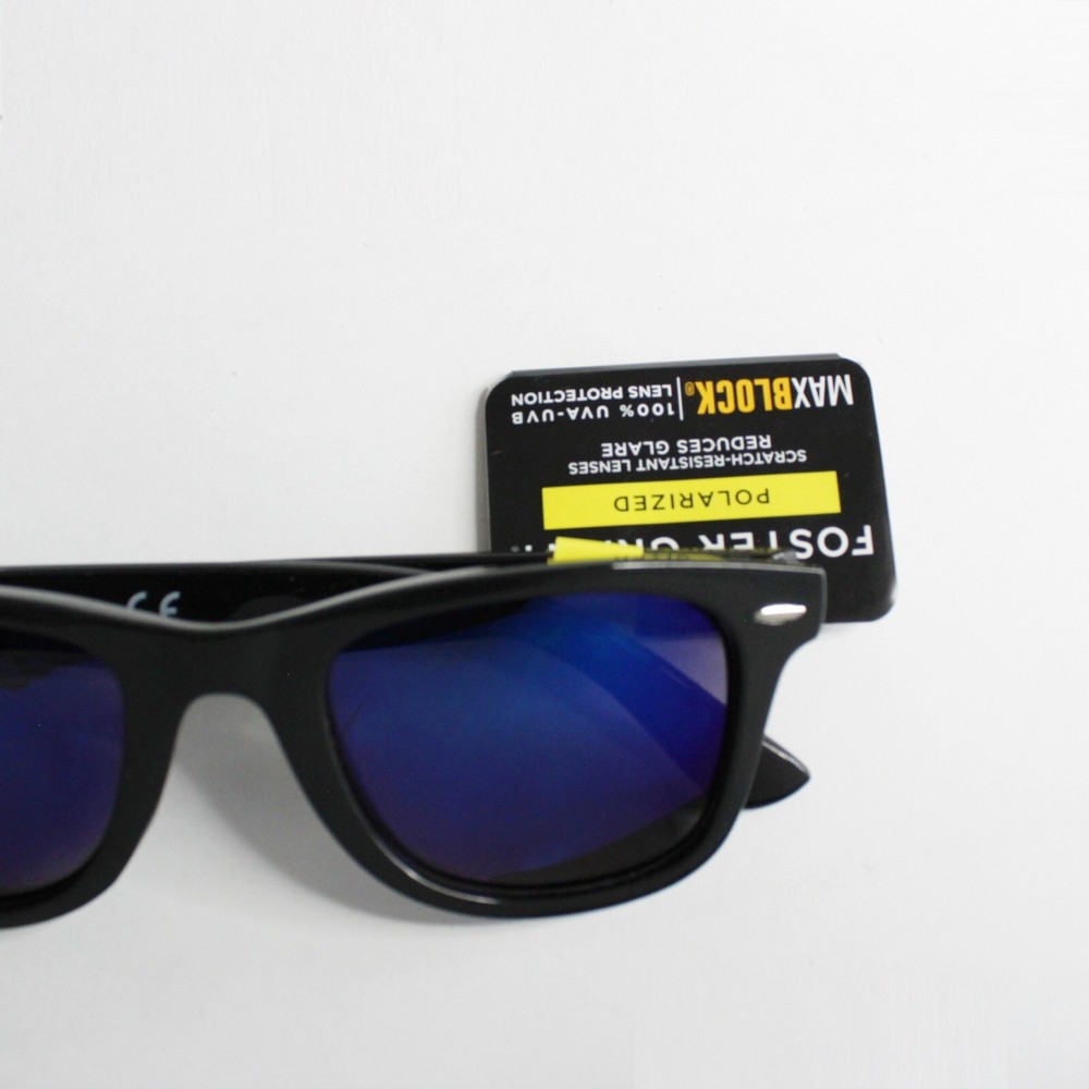 New with Tags Foster Grant Men's Sunglasses Vintage Retro Flair Polarized Scratch-Resistant Lenses Reduces Glare Maxblock 100% UVA UVB Lens Protection These sunglasses have solid black retro looking frames with blue tinted lenses. They're sharp looking glasses and are brand new with tags. Style Number: 2646