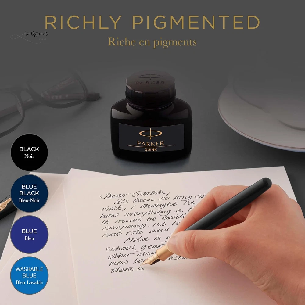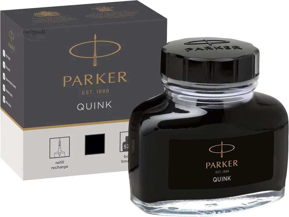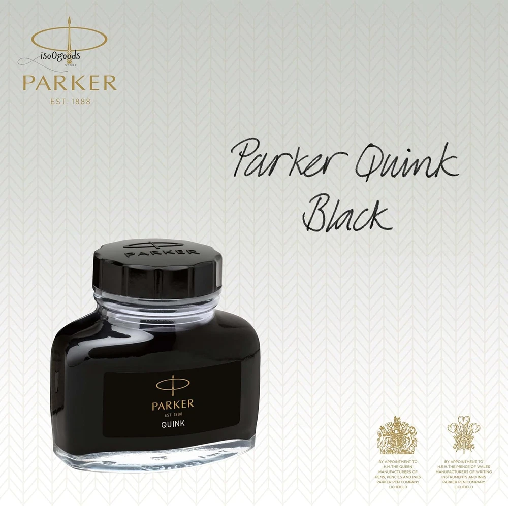 Parker Black Ink bottle Ink refill for PARKER fountain pens and other luxury fountain pens High-quality bottled ink with added lubricity for a smooth flow when putting pen to paper Quick-drying, richly pigmented ink makes a vivid impression on the page Elegant glass bottle with wide base and tight-sealing screw-top lid Includes one 50 ml bottle of black ink. Use together with PARKER converter (to be purchased separately) Rediscover classic writing pleasure with PARKER QUINK bottled ink. Filled with smooth, rich and vivid black ink, you'll enjoy the timeless ritual of bottle filling when you use your fountain pen. With PARKER fountain pen ink, you can place your thoughts on paper with the authenticity of liquid ink.
