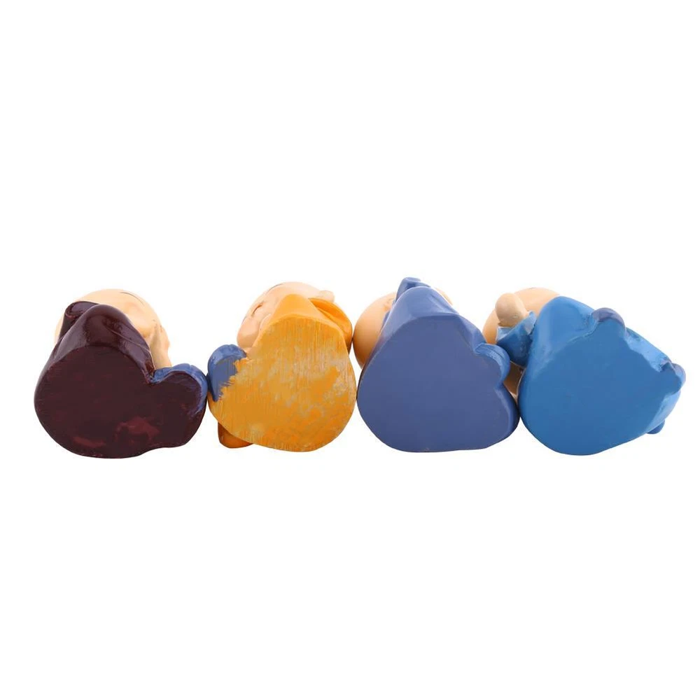 Description: Features: All figurines are made from environmental protected resin material. P aint work is pretty neat as well, good as your office ornament, home or car decoration. Chinese traditional little m onk figure, happiness and prosperity in life with these little statues. Easy to put the figurines on your desk, car dashboard, p erfect for display on shelf of store. Suitable for home, car decorative ornaments, good Valentine's day, birthday, wedding gift. Specifications: Material: Resin Color: As pictures show Size: 5 x 4.2cm / 1.96 x 1.65" Quantity: 4pcs Weight: 252g(approx.) Package Includes: 4 x Figurines Note: 1. Please allow 1-3mm error due to manual measurement. Thanks for your understanding. 2. Monitors are not calibrated same, item color displayed in photos may be showing slightly different from the real object. Please take the real one as standard.