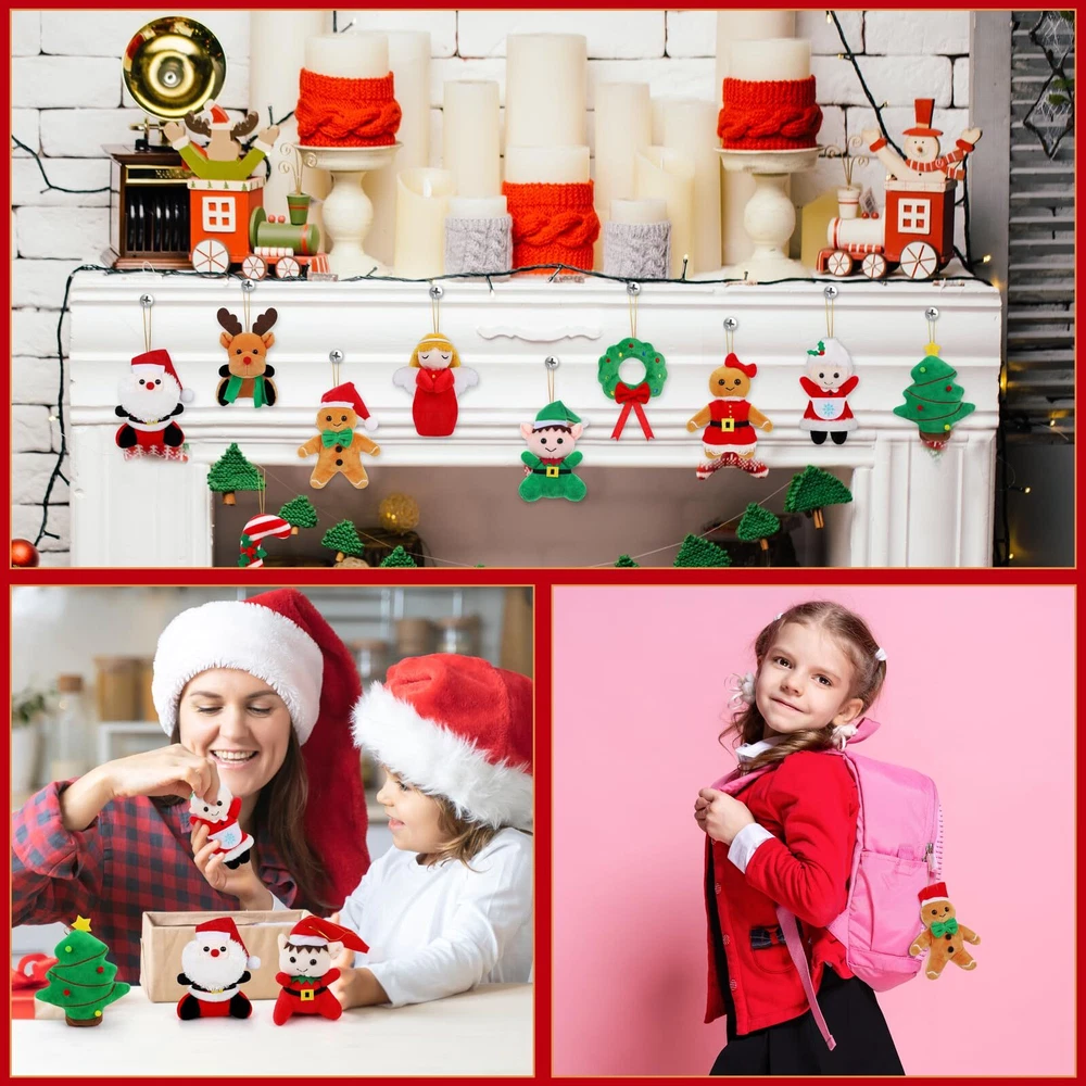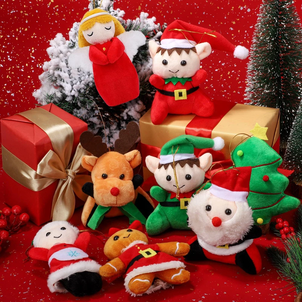 Product Parameter: Size: 4.72 inches/12 cm Color: As shown Material: PP-cotton Package Includes: 12 x Christmas stuffed animals plush toys Warm Prompts: Color differences may exist due to different displays. Our plush toys are machine washable and hand washable. You can leave them untouched for 12-48 hours until they recover after being unpacked. Packaging: includes 12 Christmas mini stuffed animals, featuring snowman, Christmas tree, Santa Claus, elk, elf, gingerbread man, Mrs. Claus, Christmas angel, Christmas wreath, candy cane, gingerbread woman, and elf woman; the classic color and unique designs will capture people's attention and fulfill all your Christmas decoration needs! Premium Material: crafted with high-quality plush fabric, stuffed with PP cotton, these mini Christmas stuffed animals plush toys are incredibly soft and comfortable to touch; crafted with exquisite sewing techniques, resulting in beautiful workmanship without any loose threads; the printed patterns are clear and fade-resistant, allowing for long-term use Adorable Design: each plush dolls is about 5.7 inches/14.5 cm, featuring classic Christmas elements and impeccable craftsmanship, and with a lively and full-bodied appearance; each plush toys comes with hanging ropes, allowing you to hang them on keys, backpacks, pencil cases, or even on the Christmas tree Versatile Use: with their adorable Christmas designs and ultra-soft plush fabric, these toys are the favorite Christmas decorations for family, friends, and young people; they are also for Christmas party gifts, Christmas photo props, classmate gift exchanges during Christmas, stocking stuffers, and gift bag fillers Warm Reminder: these plush toys are machine washable and can also be hand washed, we recommend gently cleaning the surface with detergent and a brush; upon receiving the product, it may be vacuum-sealed, please give it a gentle pat or use a blow dryer to smooth out the fur and help it quickly regain its original fluffy appearance