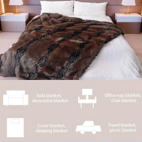 Return Policy Fast Delivery Trusted seller Fox Faux Fur Blanket Luxury Fur Throw Blanket Sofa Fluffy Blanket Super Warm Elegant Cozy Fuzzy Throw Blankets for Couch,Armchair and Bed Washable Plush Blankets 74"x90" Brown Throw Blanket Product Description SOFTNESS AND COMFORT FLUFFY BLANKET: Our faux fur blankets are made of high quality faux fox fur, our blankets are exceptionally soft and cozy, providing you with a skin-affinity experience. Throw blankets are also pet and toddler-friendly, ensuring a safe and comfortable environment for your loved ones. Fuzzy blanket extra sofuzzy, fluffy, furry, warm and cozy texture, queen blanket perfect for staying warm and comfortable in autumn and winter. HIGH QUALITY CRAFTSMANSHIP AND UNIQUE DESIGN:The faux fur blanket is made of jacquard fabric process, black and brown with more reflect the unique style of the blanket's shape. Fox fur length for high and low hair design, this design is more layered, similar to the animal hair texture. Imitation fox hair texture silky smooth, real super soft series of long hair blanket, the highest hair length 2.17 in, and the tip of the hair is also paragraph dyeing process, very simulation effect. LUXURY HOME DECOR BLANKETS: Available in a variety of colors and sizes, our faux fur blankets add a touch of luxury and sophistication to the elegant ambiance of your sofa, bed, armchair or living room. Perfect for a variety of leisure needs, this combination of functional and decorative blanket is a great choice to show off your home's style and taste. HIGH-QUALITY MATERIALS : Crafted with a faux fox fur front weighing 1000gsm and a Ultra-soft fabrics back weighing 100gsm, this blanket is the epitome of warmth and indulgence. our blankets are thicker and warmer than most blankets available on the market. The extra long faux fox fur and the high quality materials used will keep you warm and cozy on cold nights. EASY TO CARE FAUX FUR BLANKETS : The blanket is easy to care. Simply machine wash them using a cold, gentle cycle, and tumble dry them on low. The fabric weaving yarn density is relatively high and the fiber is flexible! So even after washing, its animal hair texture remains lifelike. Spend less time caring and washing with our blankets, and you can enjoy a more hassle-free cleaning and care, bringing you a better experience. Shipping Returns Payment Shipping Shipping is FREE to all addresses other than APO/PO boxes in the lower 48 states. All our stock ships from US-based warehouses. Shipped via USPS or UPS (depending on location and package weight) Unless stated otherwise, all orders will ship within 24-72 hours of your payment being processed. Check our feedback to see the great reviews of FAST shipping we offer. Returns Seller does not accept returns Payment We currently accept payment via eBay managed payments only. Once payment is cleared, we will dispatch your shipment within 1-3 business days. Please refer to the "Shipping" tab for more information regarding shipping speed to your destination.
