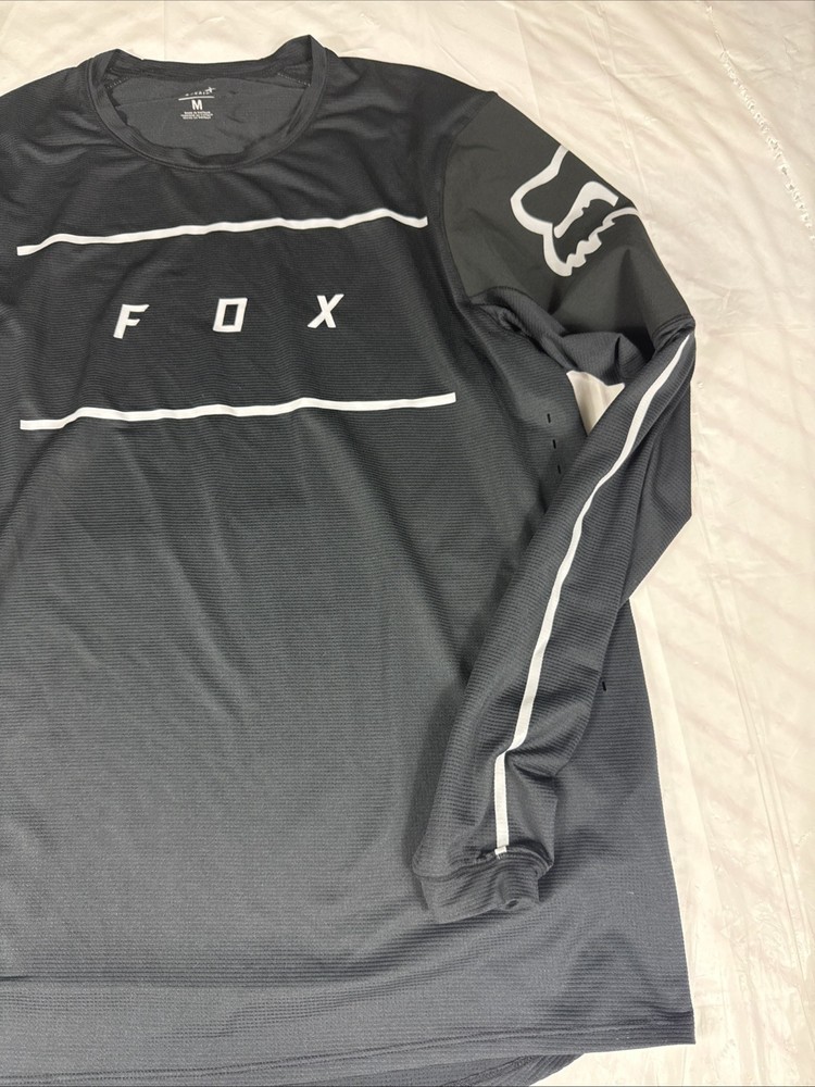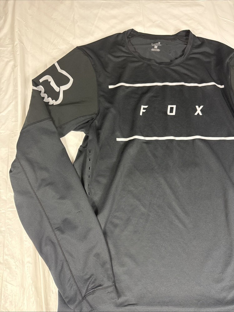 The Fox Racing Flexair Long Sleeve L Fine Line Jersey in Black, size M, is a casual cycling top designed for men. It features a comfortable lining and is perfect for cycling activities. The Fox Racing Flexair model offers high performance and style for riders looking for a quality jersey.