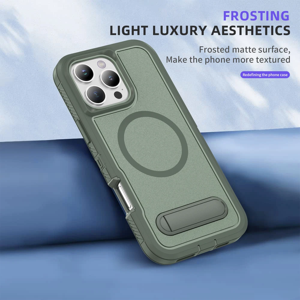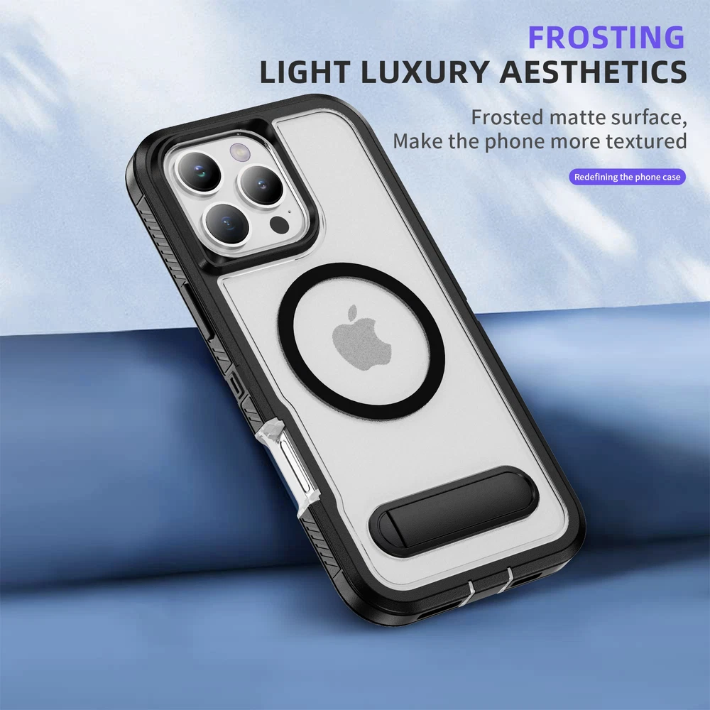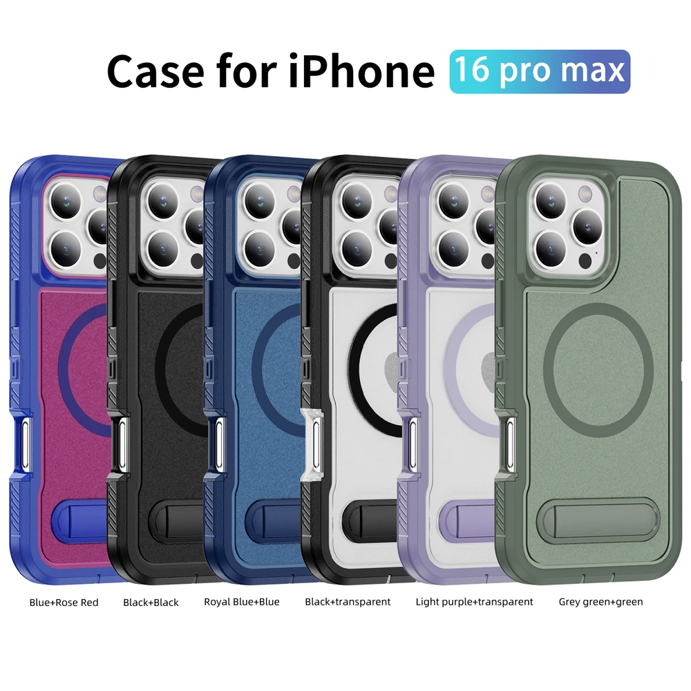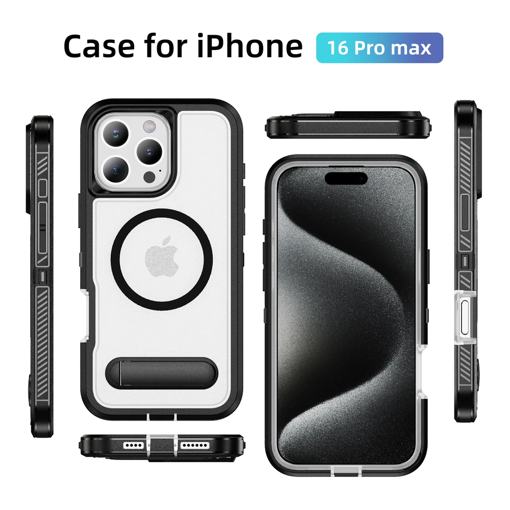 Fr iPhone 16 Pro Max 15 14 13 11 Mag Safe Case Built-in Stand + Screen Protector