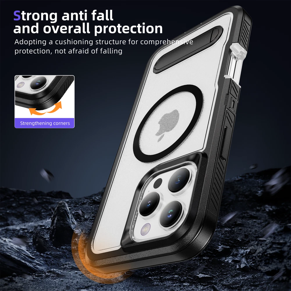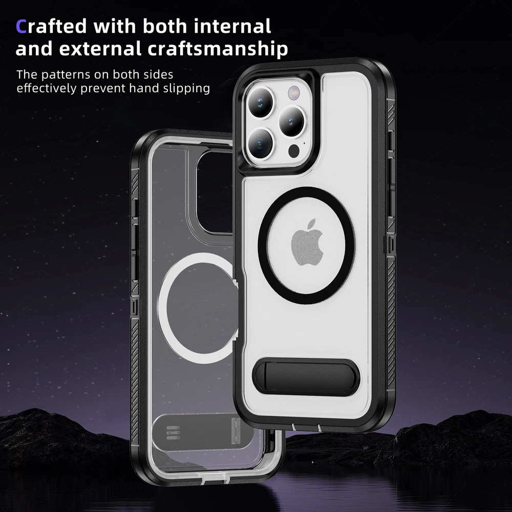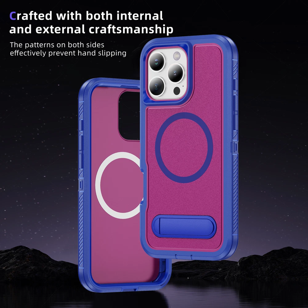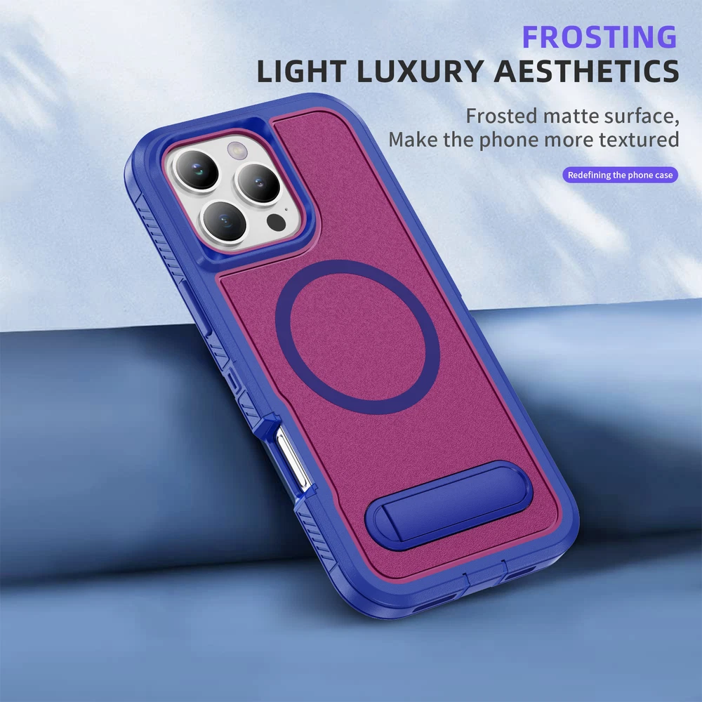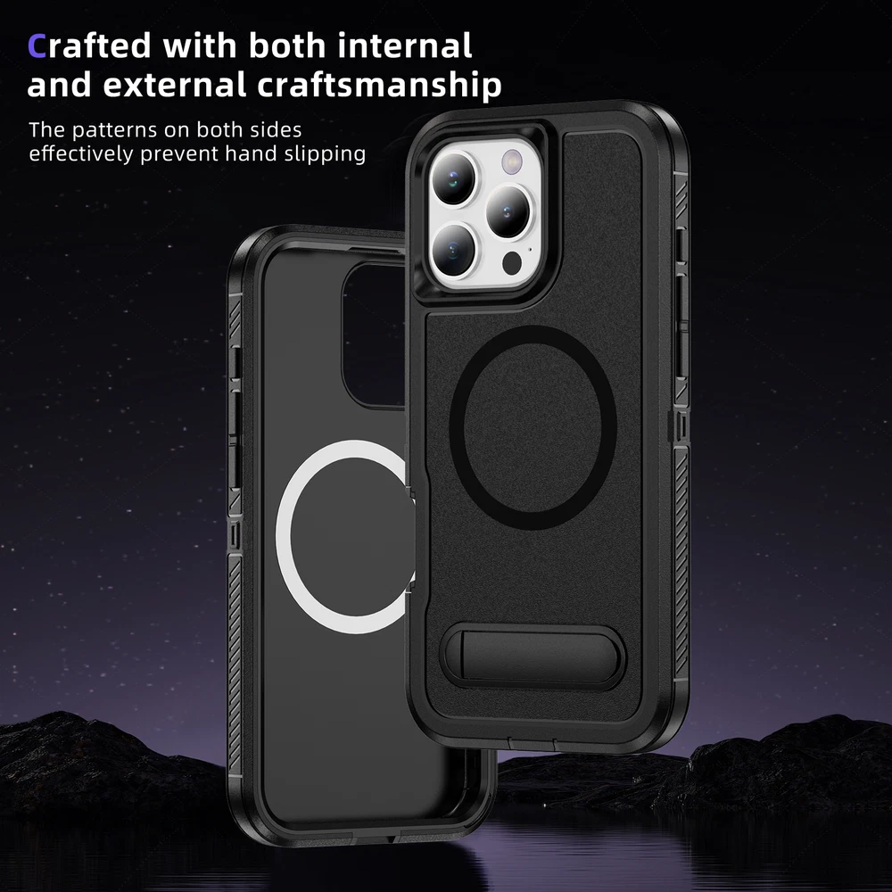 Fr iPhone 16 Pro Max 15 14 13 11 Mag Safe Case Built-in Stand + Screen Protector