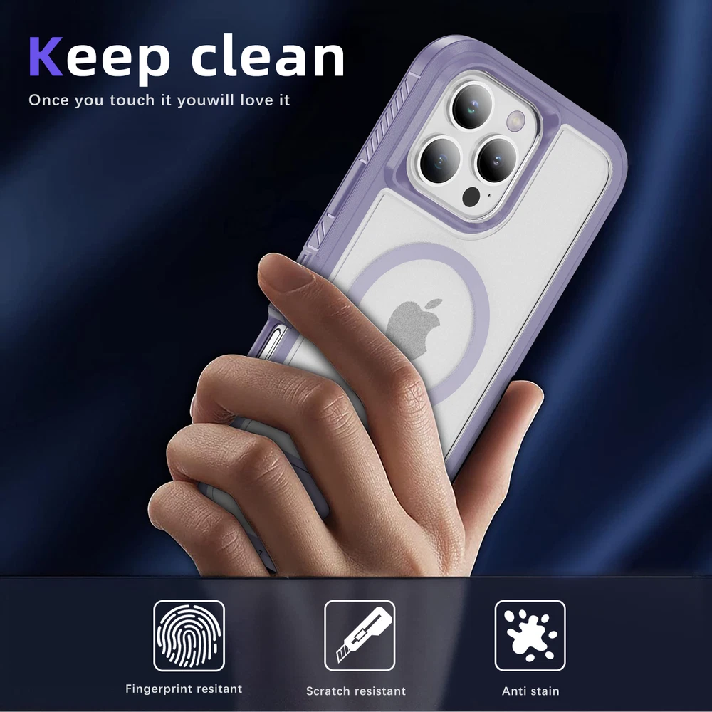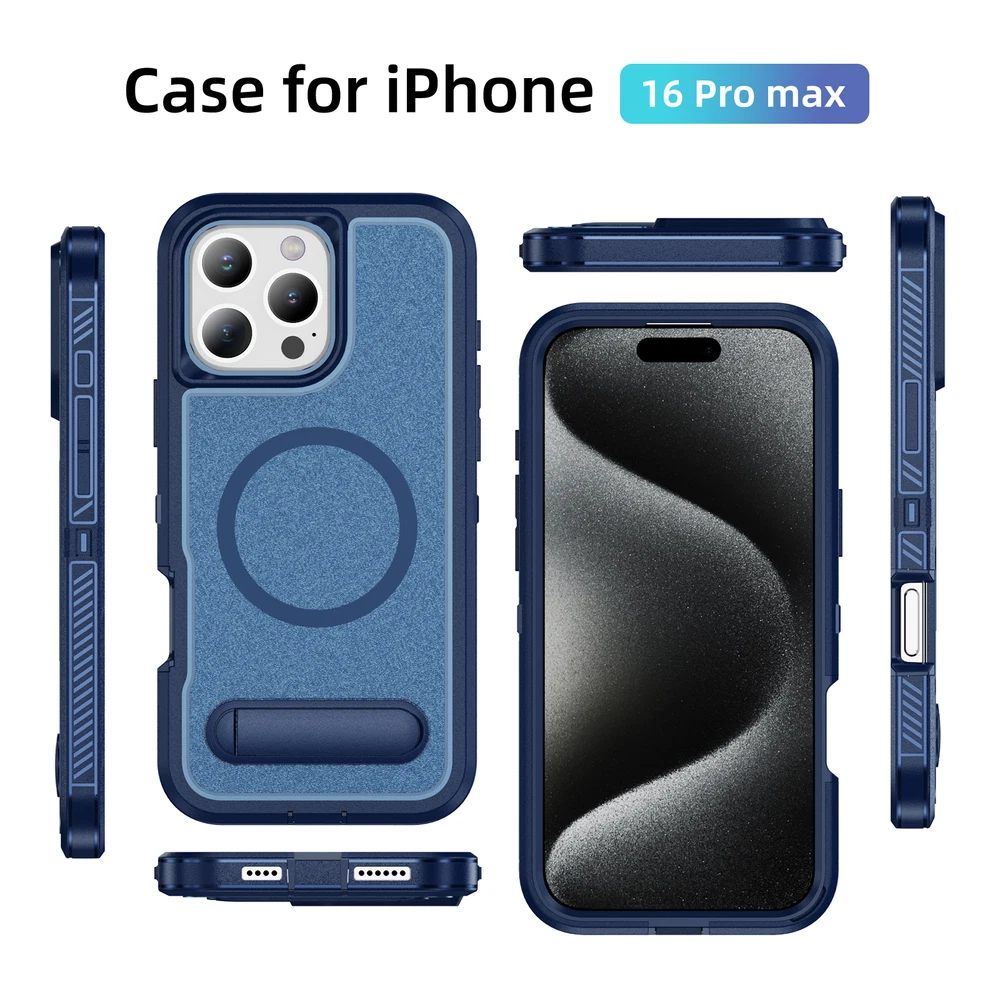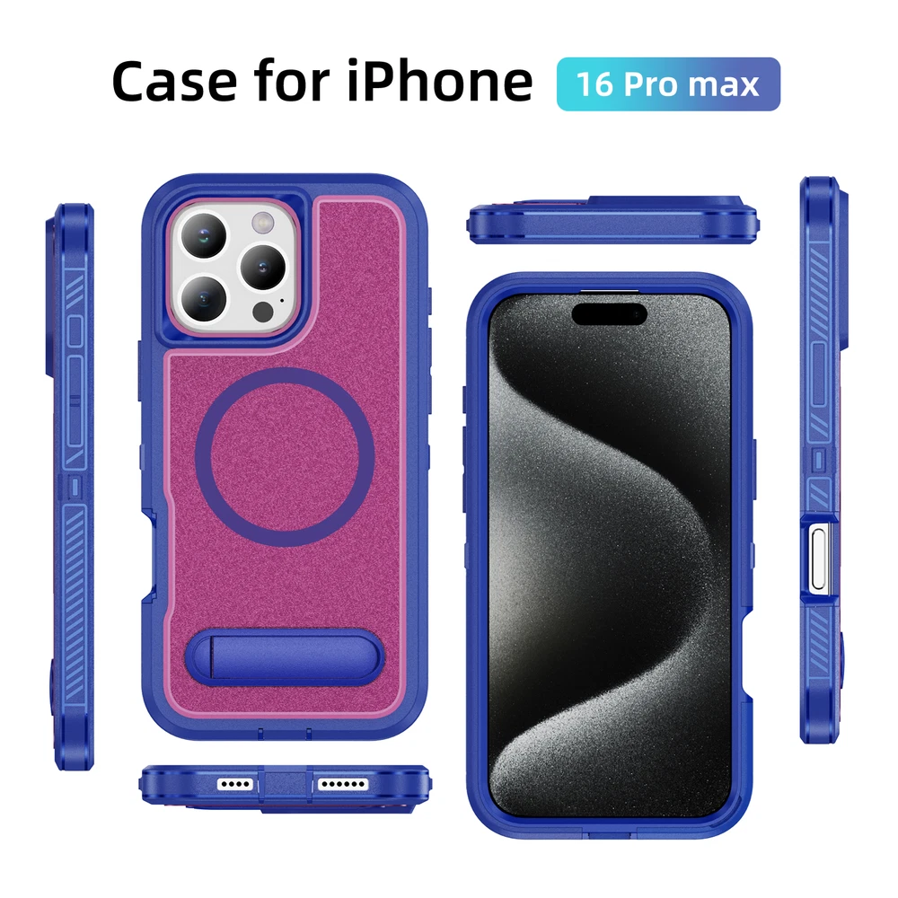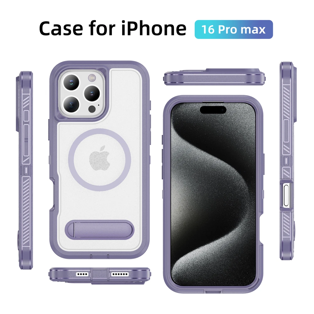 Fr iPhone 16 Pro Max 15 14 13 11 Mag Safe Case Built-in Stand + Screen Protector Key Features: Military-Grade Drop Protection: Advanced shockproof technology on all four corners and a 3-ply cushioning TPU bumper provide superior protection.Raised bezels around the screen and camera offer extra defense against dust and scratches. Enhanced Magnetic Compatibility: Compatible with Mag Safe accessories including Magnetic wallets, Car Mounts, etc, this case aligns perfectly with Magnetic chargers for a secure connection and faster wireless charging. Built-in Hidden Kickstand: The phone case is built in a hidden stand, which can hold your phone up vertically or horizontally as you wish to release your hands. Whether you're watching TV shows or video-chatting, this case with stand offers the perfect viewing angle based on ergonomic considerations to ensure optimal viewing comfort. Package: 1* Case Cover (Phone Is not included!) 1* Screen Protector
