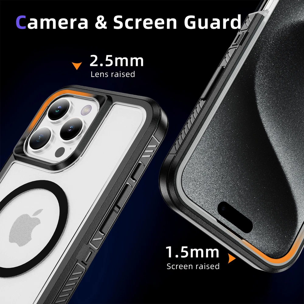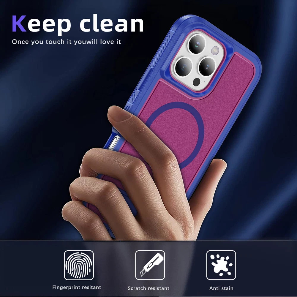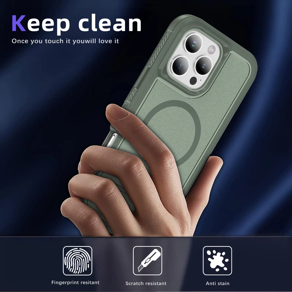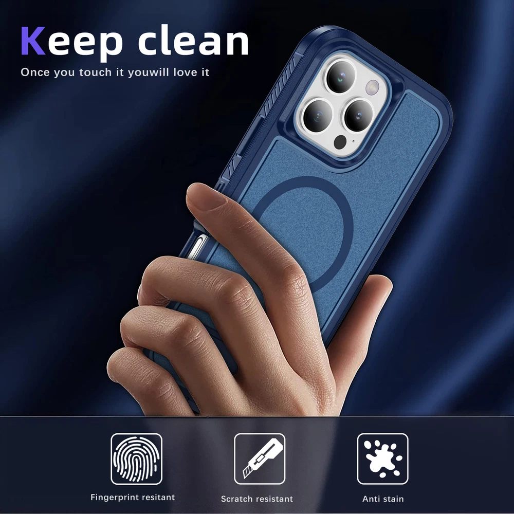 Fr iPhone 16 Pro Max 15 14 13 11 Mag Safe Case Built-in Stand + Screen Protector Key Features: Military-Grade Drop Protection: Advanced shockproof technology on all four corners and a 3-ply cushioning TPU bumper provide superior protection.Raised bezels around the screen and camera offer extra defense against dust and scratches. Enhanced Magnetic Compatibility: Compatible with Mag Safe accessories including Magnetic wallets, Car Mounts, etc, this case aligns perfectly with Magnetic chargers for a secure connection and faster wireless charging. Built-in Hidden Kickstand: The phone case is built in a hidden stand, which can hold your phone up vertically or horizontally as you wish to release your hands. Whether you're watching TV shows or video-chatting, this case with stand offers the perfect viewing angle based on ergonomic considerations to ensure optimal viewing comfort. Package: 1* Case Cover (Phone Is not included!) 1* Screen Protector