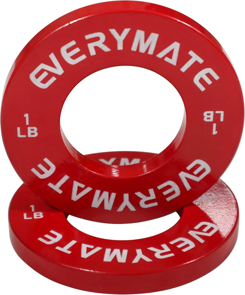SET OF 8 Plates: EVERYMATE fractional weight plates include 2 x ¼ LB, 2 x ½ LB, 2 x ¾ LB, 2 x 1 LB. Thanks to these lightweight fractional plates you can slowly increase your weight-bearing load by putting on an extra ½ LB to 5 LB. These fractional plates have 2-inch center holes and will fit on Olympic barbells and 1-inch barbells with an Olympic sleeve adapter Steel Fractional Weight Plate: EVERYMATE fractional plate is made of steel core which adds stability for plates.Corrosion-resistant, no peculiar smell. Don't worry about the smell of rubber in the fitness area at home Color coding: Colored fractional weight plates and digital signs allow you to easily identify different weight plates during exercise, saving exercise time. The brisk and bright color distinction can make it easier for people with classification needs to separate while providing a more enjoyable exercise experience. These weight plates can withstand professional training use FOR EVERYONE: Low weight increase is good for toning and building muscle tissue, steadily over time. People who are new to the gym or weight training need to be able to easily and quickly increase weights without hurting themselves, while the more experienced weight lifters will need it for that extra push to increase that muscle burn NOTE OF CAUTION: Always consult your doctor before starting any fitness program. If you feel pain or discomfort while exercising, discontinue the workout immediately and see your medical provider Product Description EVERYMATE Everyone can find your sporting mate ABOUT EVERYTMATE EVERYMATE is a lifestyle store dedicated to the pursuit of fitness and wellbeing, we are committed to bringing our customers unique shopping and product experiences. EVERYMATE online store provides a wide range of exercise equipment including adjustable dumbbells, Olympics bumper plates and fractional weight plates. EVERYMATE FRACTIONAL WEIGHT PLATE Must Have for Strength Training The answer is fractional weight plates. EVERYMATE fractional weight plates are made of solid steel that can help you to continue increasing strength gradually. The hole diameter of fractional weight plates is 2", perfect for any standard barbell. EVERYMATE change plates help you to overcome the frustrating weightlifting plateau. Whether you want to break up your personal records or work up to a higher weight. Designed for Olympic Barbells Stainless Steel Center Valid Color to Choose The honeymoon phase of weightlifting is met with that inevitable plateau that all newcomers hate, once you reach the top of where your limit is, throwing on another 10-pound weight plate every week typically isn’t possible. You begin to have a battle between your ego and your ability. If weekly ten-pound increases are too much, where do you turn? The answer is fractional weight plates, also called micro plates, fractional weight plates are a type of change plate that provide you with more lower-weight options Fractional weight plates are for anyone who can’t hit their recommended repetition mark because even a pound is too much. There’s no shame in slowly advancing. The point is that you’re moving forward, even if it is only a 0.25 or 0.5 pound at a time. MULTI-USE You can use EVERYMATE fractional weight plates with a standard barbell bar, curl bar, dumbbell bar or other weight bars. SPACE-SAVING DESIGN Fractional weight plates are recommended for anyone who has maxed out but still wants the option to take a semi-dramatic leap during one of those workouts where you feel like your lift game is on-point. DESIGN FOR DURABILITY&HIGH PERFORMANCE Built from solid metal EVERYMATE fractional weights plates can withstand highly repetitive usage. WHY CHOOSE EVERYMATE FRACTIONAL WEIGHT PLATES SET? Fractional weight plates are designed for incremental weight increases in your Olympic weightlifting training. Collar opening allows you to place fractional weight plates outside of collars for incremental weight increases without having to worry about them slipping off the bar. Meant for use with standard Olympic Sized Barbells. FEATURES Everymate fractional weight plates set featured a matte finish with color-coded weight dimensions for easy identification during your workout and between sets. COLOR-CODED WEIGHTS The fractional weight plates have a matte finish with color-coded weight dimensions for easy identification during your workout and between sets. DURABLE CONSTRUCTION These unique fractional weight plates are constructed with a durable steel internal ring that helps maintain the plate's shape. EVERYMATE is committed to providing our customers with quality fitness products at great prices.
