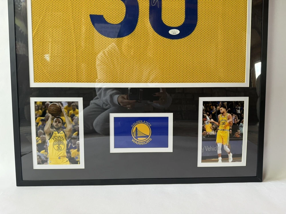 Framed Autographed Stephen Steph Curry Golden State Warriors Jersey JSA COA