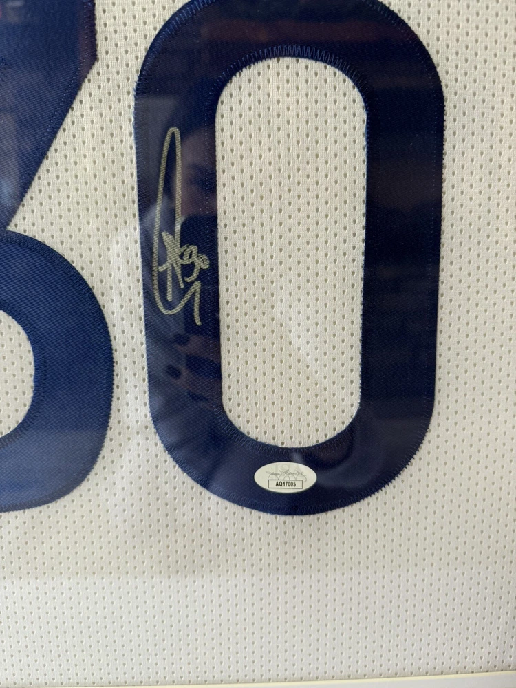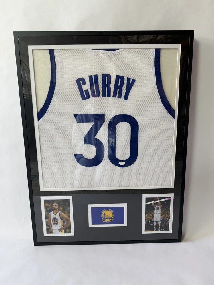 This framed autographed Golden State Warriors jersey is a must-have for any Stephen Curry fan. The jersey is an original, and has been signed by the NBA player himself. It has been authenticated by James Spence Authentication (JSA), ensuring its authenticity. The jersey is perfect for display in your home or office, and is a great addition to any sports memorabilia collection. The autograph authentication provided by JSA adds value to this product, making it a reliable and desirable item for any basketball fan. The size of the frame is 32” x 24”.