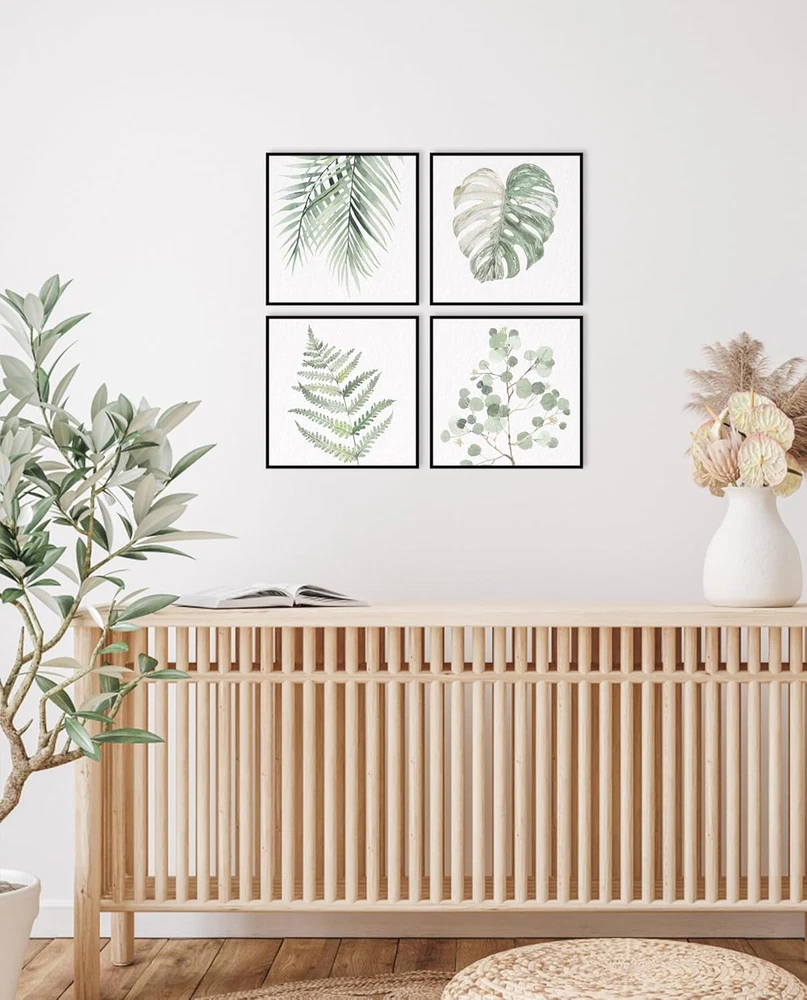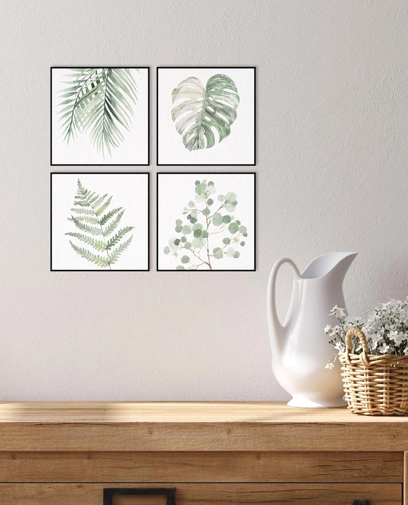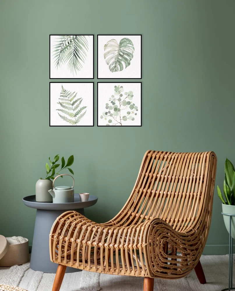Framed Botanical Plant Wall Art: Sage Green Leaves Bathroom Pictures Decor Set o