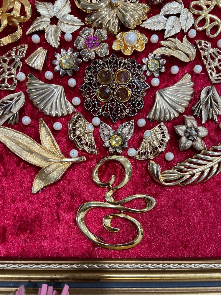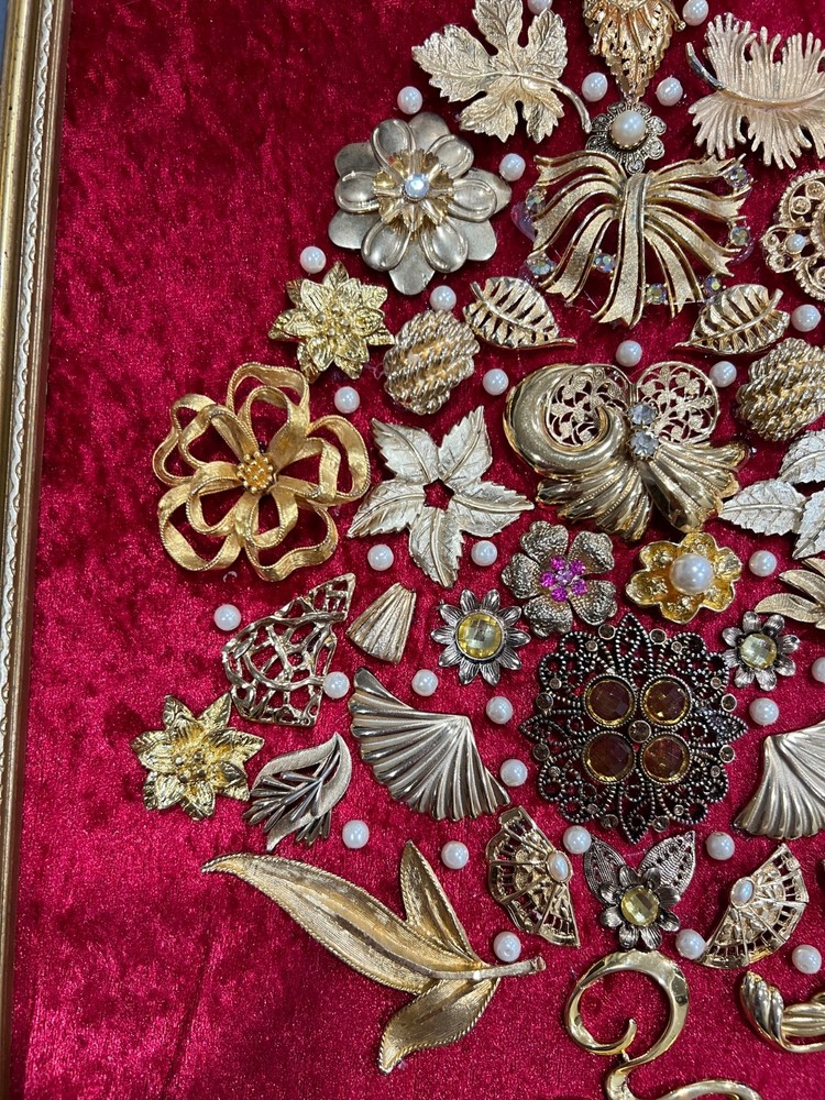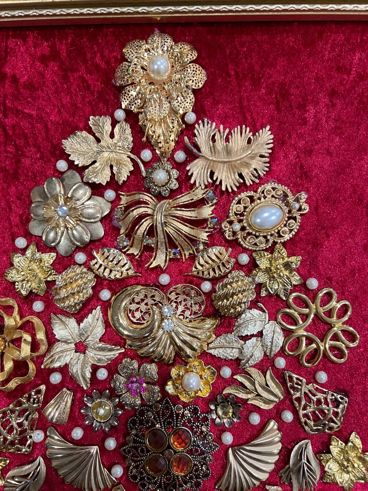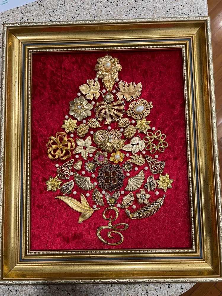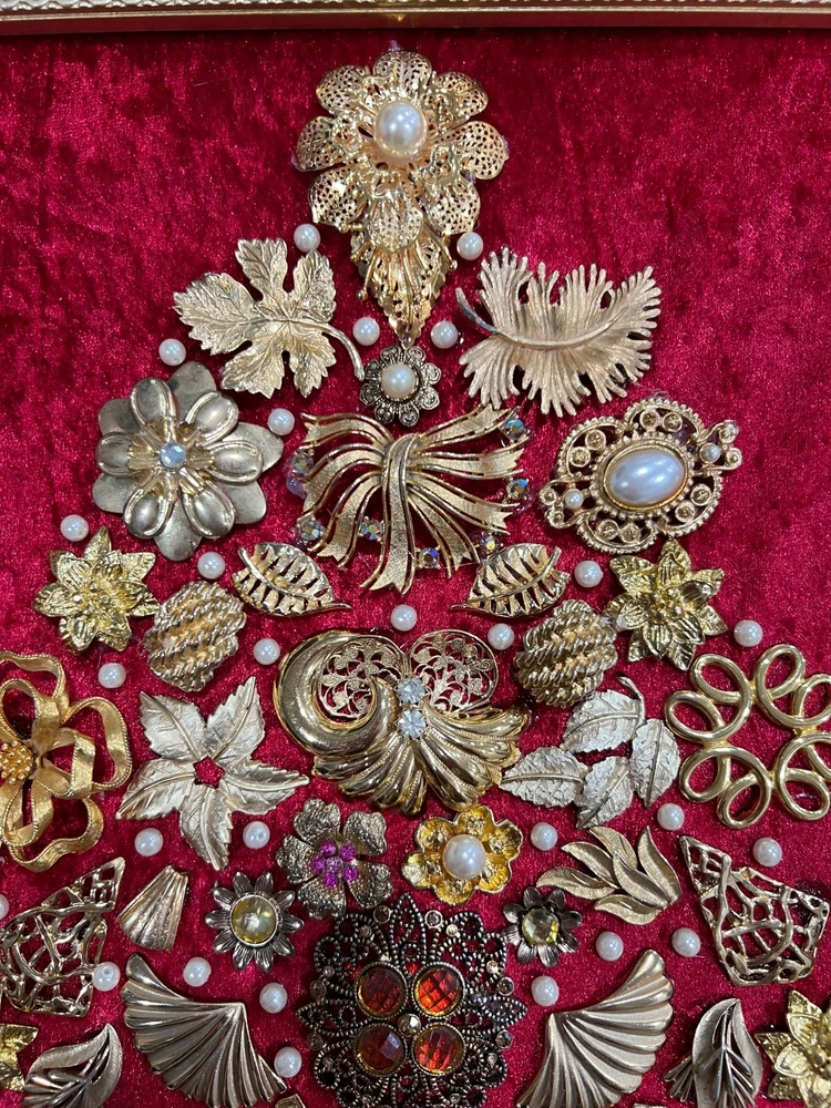 Framed Christmas Tree made with Vintage Costume Jewelry
