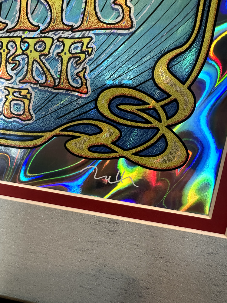 Capture a piece of music history with the 32" X 26" Framed Dead & Company Foil Concert Poster from their performance at the Shoreline Amphitheatre, in Mountain View, CA on July 30, 2016. Very Rare numbered poster # 66 of 150. Poster artist is Dave Hunter. Poster signed by artist. Excellent condition. Celebrate the iconic Grateful Dead spin-off with this original piece, a must-have for any collector or fan of the rock and pop genre. Expertly crafted in the United States, this poster is not just a visual memento but a tribute to the enduring legacy of the band. It's a standout addition to any music memorabilia collection, bringing a touch of the Grateful Dead's spirited energy into your space. Poster description: Foil Poster; Red frame with a sheet of glass, white outer matting, red inner matting; Angel holding roses