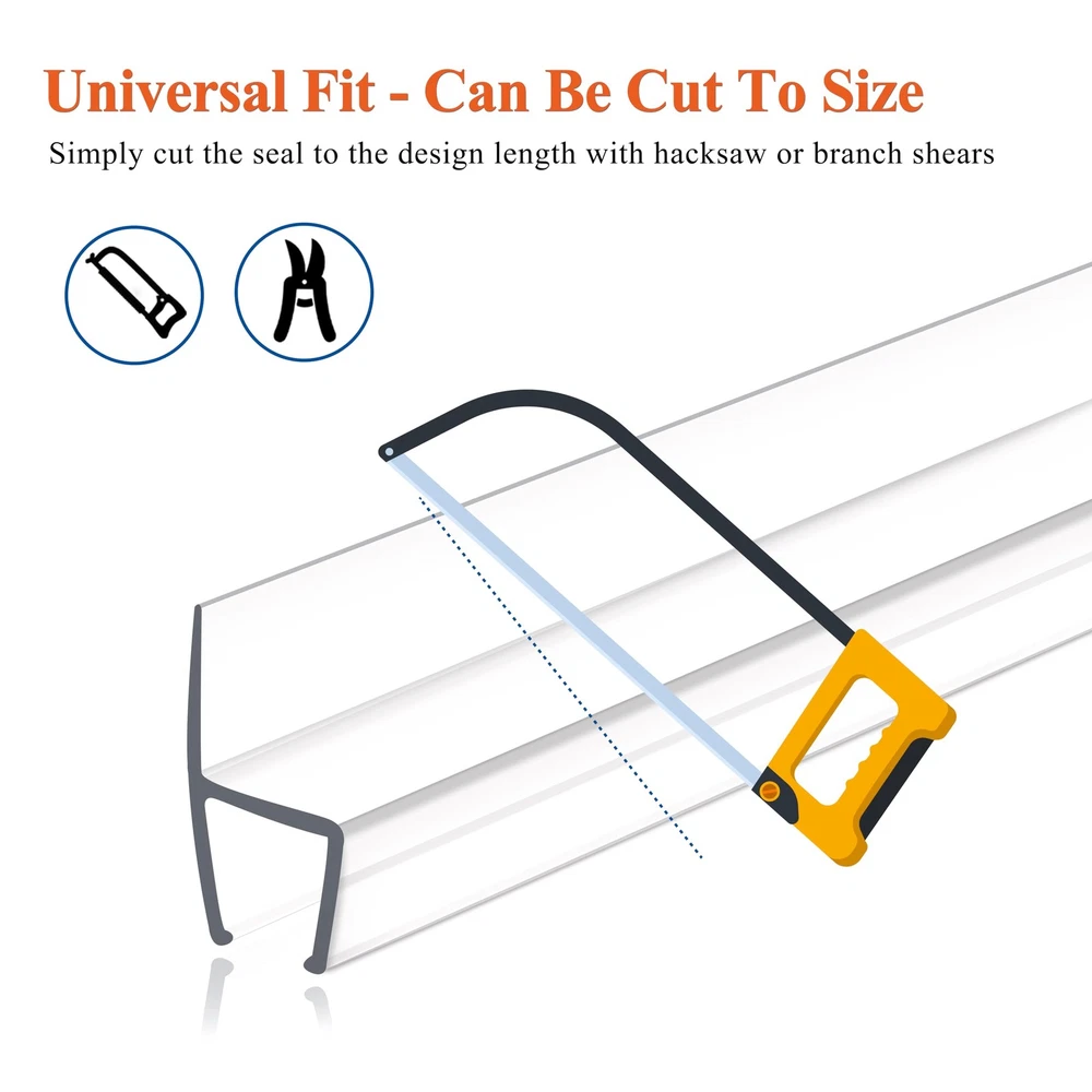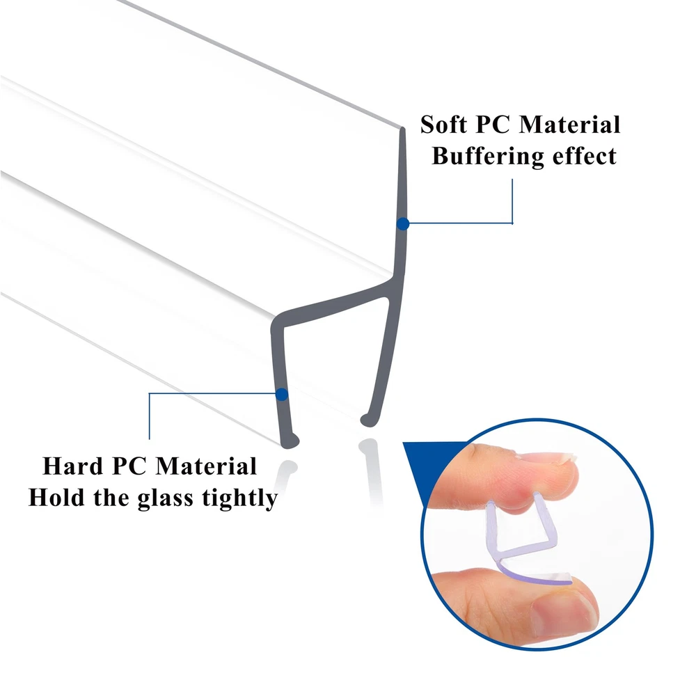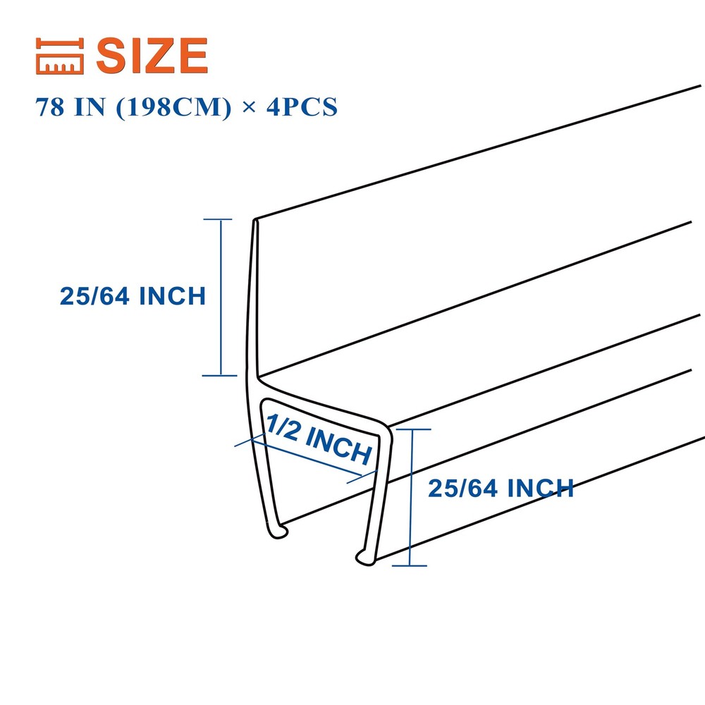 Frameless shower door seal strip is shower door water stopper, water sealer, swing shower door sealers for door frame, bottom door seal, door seals for exterior doors, door corner seals, door bottom seal strip stopper, glass door seal strip, overhead door bottom seal, shower sealer, sliding frameless shower door frame seal strip, butecare frameless shower door bottom seal, glass shower door side seal strip 1/2 inch, shower door bottom seal strip, shower rubber seal strip, glass shower door seal strip 1/4 inch, glass shower door bottom seal strip, bottom seal for glass shower door, sliding shower door 3/8 inch glass, frameless shower door swing, shower squeeze for glass door and tile, shower leak seal strip, adhesive shower door seal 1/2 inch. Open seals new magnetic glue-free single front drip rail rail kit glue buttom frame dishwasher combo curved bathroom bath screen. PROFESSIONAL COMMERCIAL GRADE: 4 PCS x 78 inch H-type glass shower door seal strip designed for 1/2" Glass. It can be used as shower door side seal or as bottom seal. Perfectly fill the gap between the door bottom threshold to effectively prevent water overflow ULTRA CLEAR POLYCARBONATE MATERIAL: Shower seal strip for glass door is Made of ultra clear polycarbonate. Compared to silicone or vinyl shower strips, our polycarbonate shower door gasket are super aging resistance and do not change color after long-term use EASY INSTALLATION: No tools and adhesives required! Using hard PC material, it can firmly grip the glass door. Simply cut the shower door seal to the right length, place it under the shower door and push upwards to snap it into place CREATE GREAT WATER BARRIER: Effectively prevent water from overflowing and keep the bathroom clean. Compared with others, our frameless shower door side seal are not spliced. Better water resistance, no water leakage at all! Create a great water barrier on your door and get a dry shower floor MORE FUNCTIONS: Fins of shower glass door seal strip is soft material, which has shock absorption on glass door to prevent sudden collision and damage, and it has good performance in waterproof, dustproof, windproof, soundproof etc. Not just shower door leak guard and shower door bottom sweep H-TYPE SHOWER WATER DAM: When used as a frameless glass shower door bottom seal, it has the function of shower door sweep and shower water guard. Its fins are made of soft PC material and are 25/64 inch long. Can effectively return water to the shower. A powerful shower dam ADD TO CART WITH CONFIDENCE: We offer free replacement warranty services for shower door seal strip. If you have any questions, please feel free to contact us, we are online 7×24 hours 1/2 SHOWER DOOR SIDE SEAL 1/2 INCH GLASS: Swinging shower door side seal strip is shower door seal strip bottom shower door seal strip, shower sweep for glass door, shower door sweep 1/2 inch glass, 1/2 shower door bottom seal 1/2 inch glass, shower door water guard, shower door seal 1/2 inch glass bathroom glass door seal strip