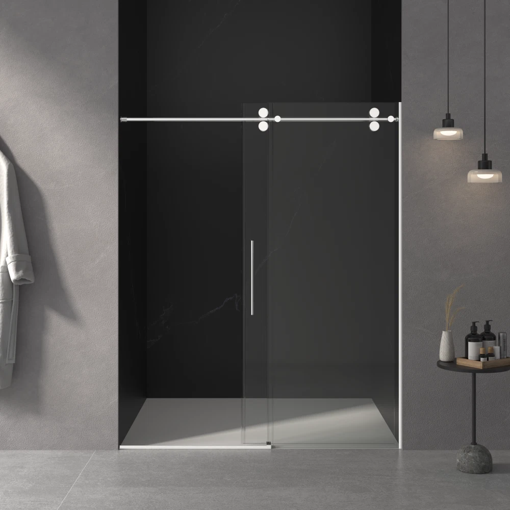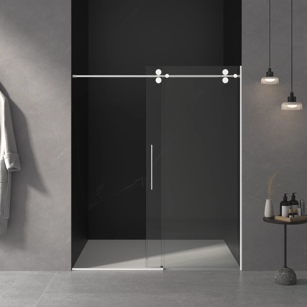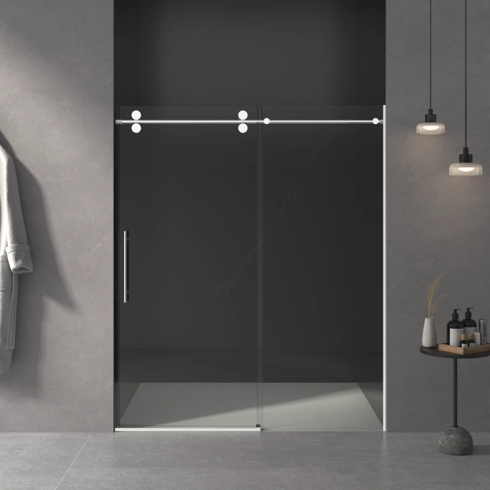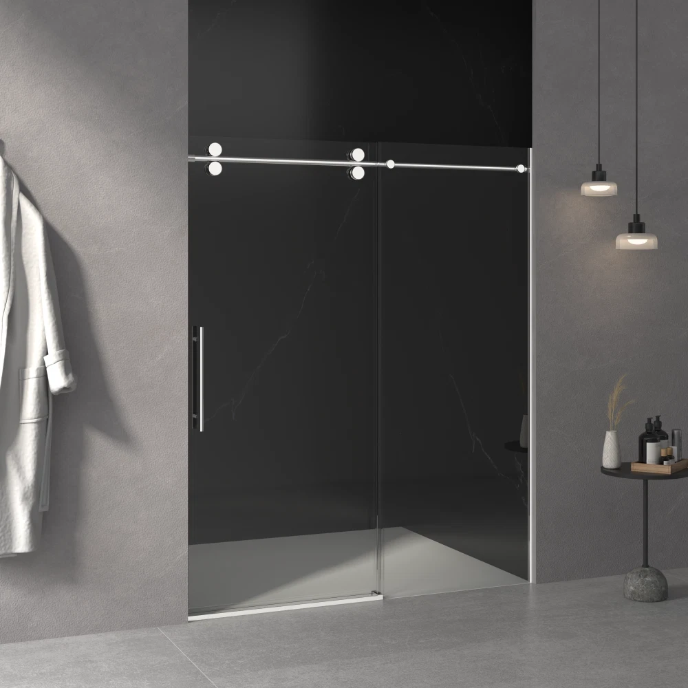 56"-60" W x 76" H Frameless Sliding Shower Door | 3/8" (10mm) Tempered Glass | Chrome Finish | Easy Clean Coating | 30-Day Returns & 1-Year Warranty Product Overview Upgrade your bathroom with this premium 56"-60" W x 76" H Frameless Sliding Shower Door . Designed for modern homes, this shower enclosure combines safety, durability, and elegance. The adjustable width allows for a perfect fit, while the high-quality materials ensure long-lasting performance in wet environments. Why choose this shower door? Unlike traditional framed doors, this frameless sliding design offers a sleek, minimalist look while maximizing bathroom space. The heavy-duty 3/8" tempered glass and corrosion-resistant stainless steel frame provide both safety and style. Key Features ✅ Adjustable Width (56"–60") – Fits various shower openings. Measure after wall finishing for best results. ✅ Premium 3/8" (10mm) Tempered Glass – SGCC & ANSI certified for safety and durability. Resists breaking and shattering. ✅ Stainless Steel Frame & Handle – Chrome-finished, rust-proof, and built to last in humid bathroom conditions. ✅ Double-Sided Easy Clean Coating – Repels water and stains, keeps glass cleaner for longer, and reduces maintenance. ✅ Smooth Sliding with Buffer Mechanism – Soft-close buffer ensures quiet, effortless operation every time. ✅ Reversible Installation – Can be installed to open left or right. Step-by-step instructions and all hardware included. ✅ Leak-Proof Design – Effectively contains water inside the shower, keeping your bathroom floor dry. ✅ Secure Packaging – Shipped in a reinforced honeycomb box to ensure damage-free delivery. What's Included Component Description Glass Panel 3/8" tempered glass door panel Hardware Kit Stainless steel frame, handle, sliding mechanism, buffer, and mounting hardware Installation Guide Step-by-step instructions for easy setup Note: Shower base / pan is NOT included. Specifications Product Dimensions: 60" W (adjustable from 56") x 76" H Glass Thickness: 3/8" (10mm) Finish: Chrome Material: Stainless Steel + Tempered Glass Total Shipping Weight: Approx. 202 lbs (2 boxes) Return Rate: Low – trusted by customers nationwide Shipping & Fulfillment Handling Time: 1–3 business days Ships in 2 Boxes: Box 1: 78.66" x 30.94" x 3.66" / 104.3 lbs Box 2: 78.03" x 35.04" x 2.76" / 97.75 lbs Buyer Protection 🛡️ 30-Day Free Returns – Not satisfied? Return within 30 days for a full refund. 🛡️ 1-Year Warranty – Covers manufacturing defects. Contact us for hassle-free support. Why Buy From Us? Trusted Seller: Specializing in high-quality bathroom fixtures Low Return Rate: Customers love the quality and fit Responsive Support: We're here to help with installation questions or concerns Order now and give your bathroom the luxury upgrade it deserves!