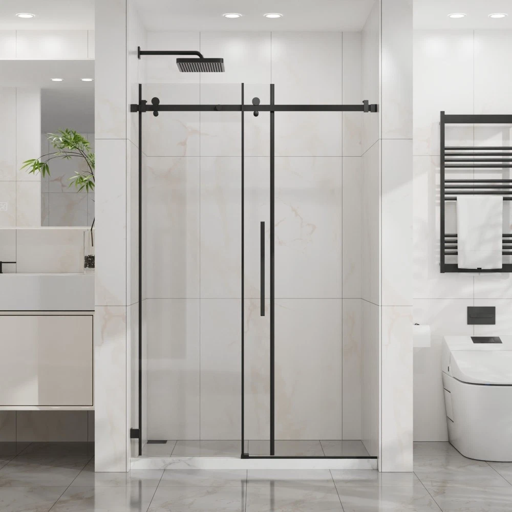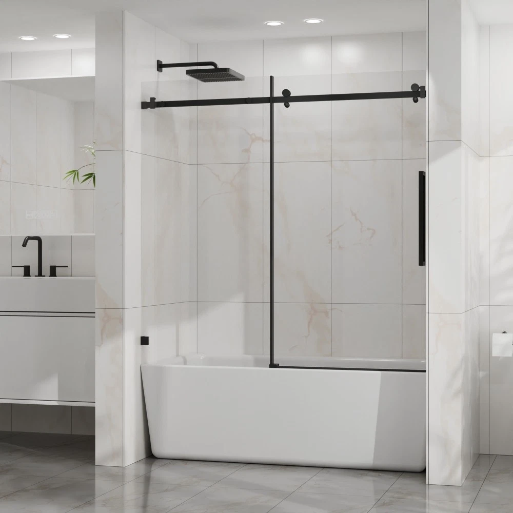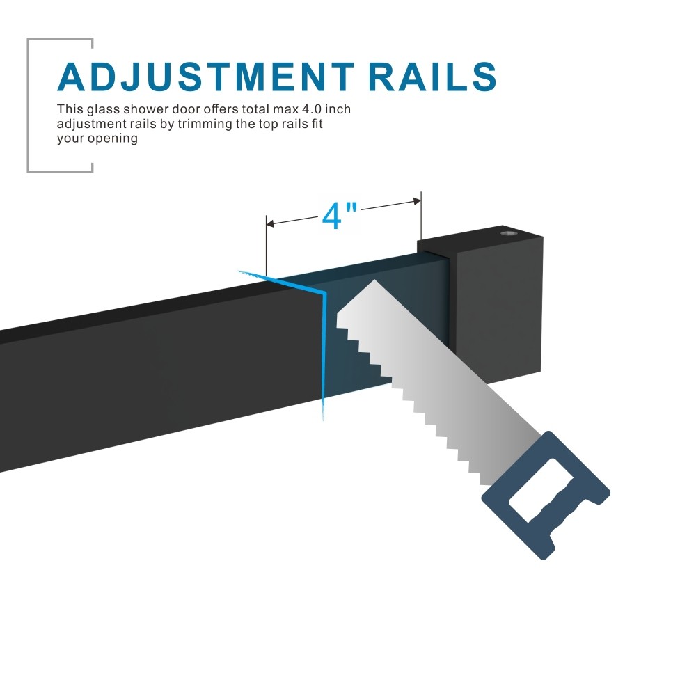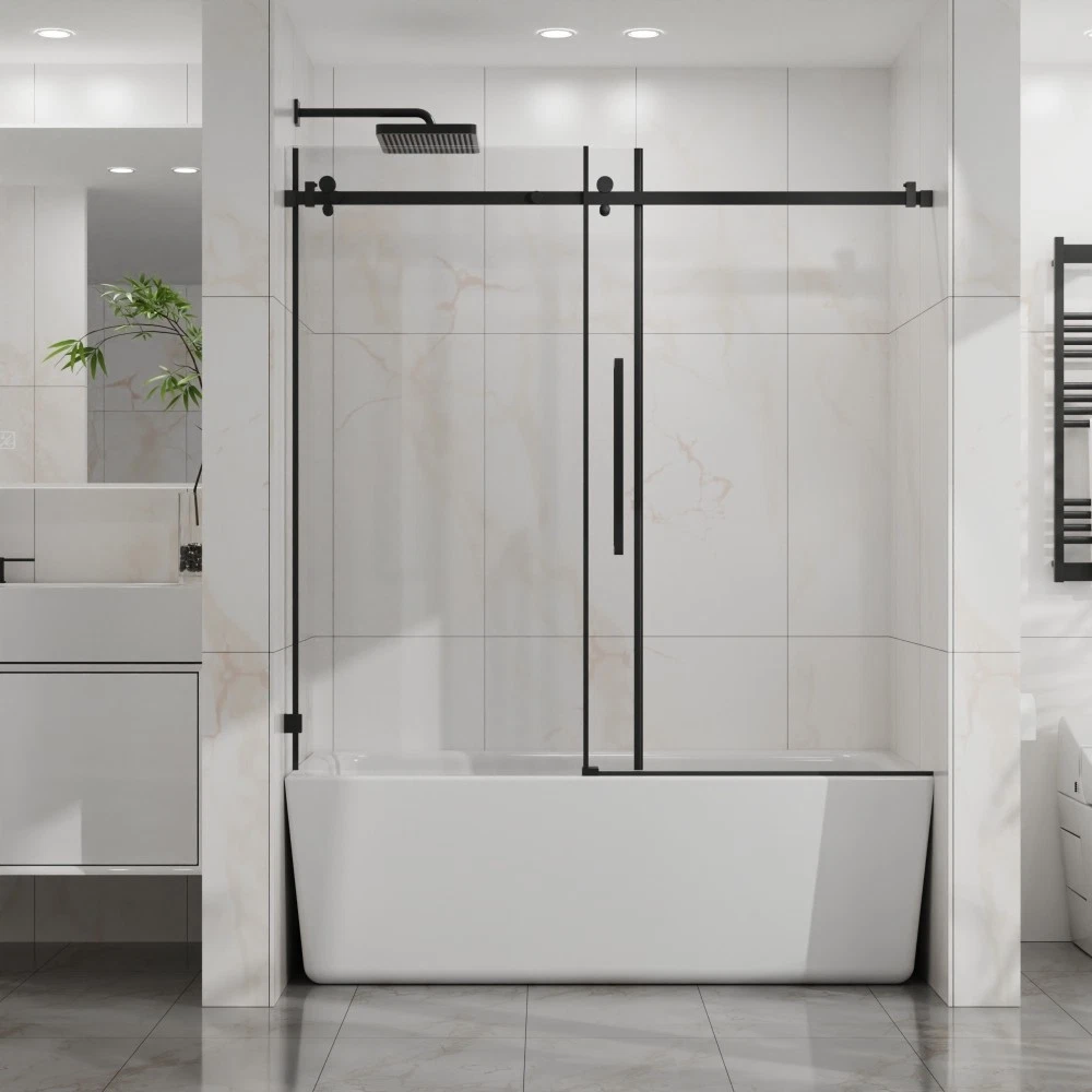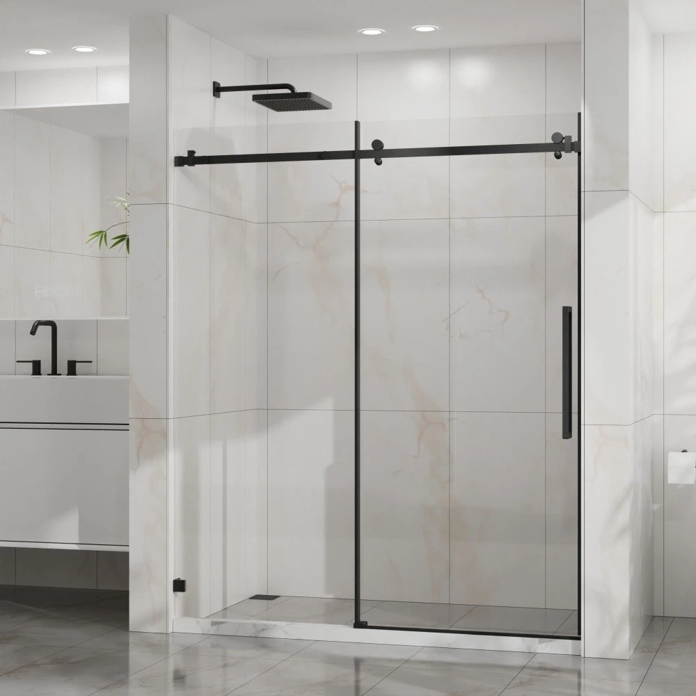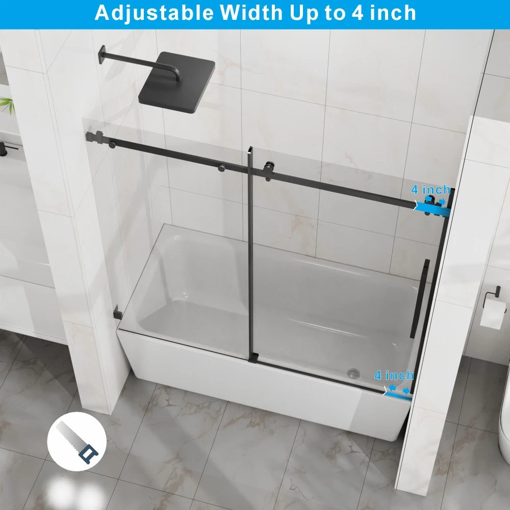 Key Specifications Dimensions : 60"W x 72"H (Adjustable Width: 56"-60"; cut top/bottom tracks for a custom fit) Glass Thickness : 1/4" (6mm) SGCC Clear Tempered Glass with Easy-Clean Coating Hardware Material : Premium Stainless Steel with Matte Black Finish Product Weight : 95.92 lbs Assembly : Reversible left/right sliding design for flexible installation Premium Features ✅ Adjustable & Versatile Design : With an adjustable width range of 56" to 60", this shower door fits most standard bathroom layouts. The reversible sliding mechanism allows you to install the door to open left or right, adapting to your bathroom’s unique configuration. The matte black finish adds a modern, timeless touch that complements any contemporary decor. ✅ Superior Safety & Durability : Made from 1/4" (6mm) SGCC-certified clear tempered glass, this door offers exceptional strength and shatter resistance. Equipped with an explosion-proof coating, it prevents glass shards from scattering if broken, ensuring maximum safety for you and your family. The easy-clean coating repels water spots, soap scum, and grime, keeping the glass crystal clear with minimal maintenance. ✅ Advanced Waterproof Performance : Features professional splash-proof technology and high-quality waterproof seal strips, effectively preventing water from leaking out of the shower enclosure onto your bathroom floor. Keep your bathroom clean, dry, and elegant all year round, reducing the hassle of post-shower mopping. ✅ Smooth & Quiet Sliding : Built with corrosion-resistant stainless steel rollers and a sturdy steel frame, the door glides smoothly and quietly with every use. The premium hardware ensures long-lasting durability, even in humid bathroom environments, maintaining peak performance for years to come. ✅ Secure Packaging & Easy Installation : Shipped in heavy-duty honeycomb cardboard with corner protectors and cushion padding, ensuring the door arrives undamaged. All necessary hardware and a detailed step-by-step instruction manual are included, making DIY installation a breeze—no professional plumber required. Warranty & Return Policy We stand behind the quality of our products. Enjoy 1-Year Manufacturer Warranty against defects in materials and craftsmanship. If you’re not completely satisfied, take advantage of our 30-Day Free Return & Exchange Policy —no questions asked. Shop with confidence knowing your investment is protected. Packaging Details Packaging Dimensions: 76.37"L x 34.25"W x 3.74"H | Packaging Weight: 116.16 lbs Transform your bathroom into a spa-like retreat with this high-performance frameless sliding shower door. Order now and experience the perfect combination of style, safety, and convenience!