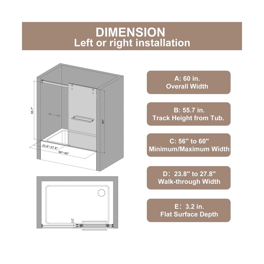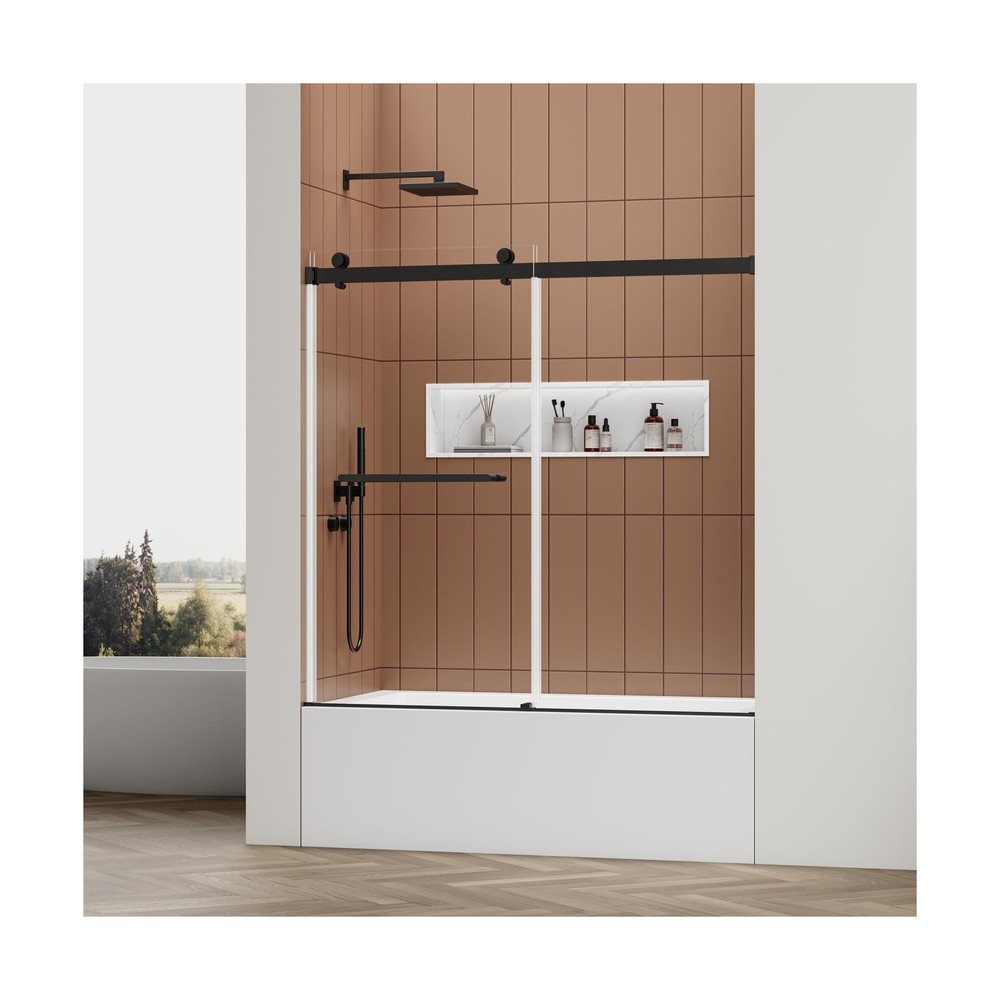 Double Sliding Frameless Bathtub Shower Door, 56-60 in. W x 60 in. H Glass Door, 5/16" (8mm) Tempered Glass with Double Nano Coating, Easy-to-Clean (Black Product Details Size: 60x60 Color: Matte Black Brand: JONIVRAT MPN: JVR-A01 UPC: Does not apply EAN: Does not apply Brand: JONIVRAT Color: Matte Black Material: Stainless Steel Style: Minimalist Assembly Required: Yes Brand: JONIVRAT Color: Matte Black Material: Stainless Steel Style: Minimalist Assembly Required: Yes Manufacturer: JONIVRAT Part Number: JVR-A01 Item Weight: 124.8 pounds Product Dimensions: 0.31 x 60 x 60 inches Country of Origin: China Item model number: JVR-A01-6060 Size: 60x60 Batteries Included?: No Batteries Required?: No Date First Available: June 23, 2025 Sleek Frameless Design: The JONIVRAT JVR-A01 features a clean, frameless design with a matte black stainless steel frame, perfect for modern bathroom styles. The semi-frame design creates an elegant, open appearance, contributing to a stylish and expansive bathroom look. High-Safety Tempered Glass: Built with 5/16" (8mm) tempered glass, the JVR-A01 ensures superior impact resistance and heat durability. The tempered glass provides additional safety, reducing the risk of breakage and offering peace of mind for daily use. Innovative Nano Coating: The glass is coated with a dual-sided nano coating that effectively prevents water stains and soap scum, making maintenance hassle-free. The coating ensures the glass stays spotless with minimal effort, maintaining a fresh and clean look over time. Flexible Installation and Width Adjustment: The JVR-A01 tub shower door fits openings between 56" and 60" wide, offering flexibility for different bathroom layouts. The reversible handle placement provides additional installation versatility, maximizing space and convenience. Premium Hardware & Durability: Equipped with 304 stainless steel hardware and a matte black finish, the JVR-A01 bathtub shower door is resistant to corrosion and rust. The high-quality materials guarantee smooth operation and long-lasting durability, providing a reliable and quiet sliding experience for years to come. Payment Back to Top We accept Paypal and All Major Credit Cards. Shipping & Handling Back to Top Item will be shipped FREE standard shipping in 1 business day after payment is received. Express Shipping services are available. Tracking number will be provided. Return Policy Back to Top Items can be returned for exchange or full refund within 30 days from the date you receive your merchandise. Please contact us before starting a return request, so we can resolve any issues and provide free returns if needed. Return shipping is the responsibility of buyer unless the return is a result of our mistake (i.e., your receive the wrong item). Contact Us Back to Top If you have any questions please contact us. We will respond within 1 business day or less.